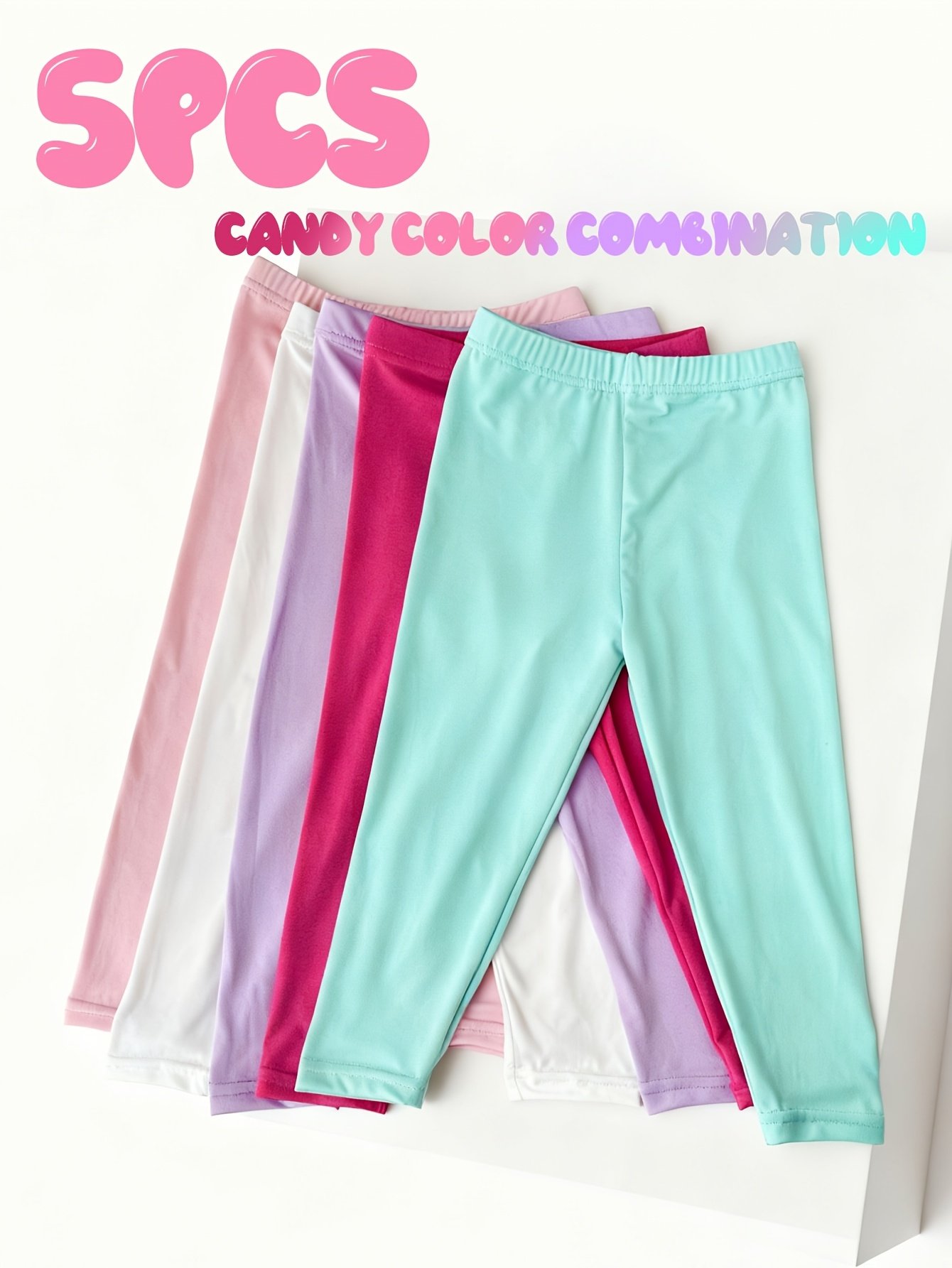 5 leggings filles couleur bonbon – pantalons cheville confortables – toutes saisons