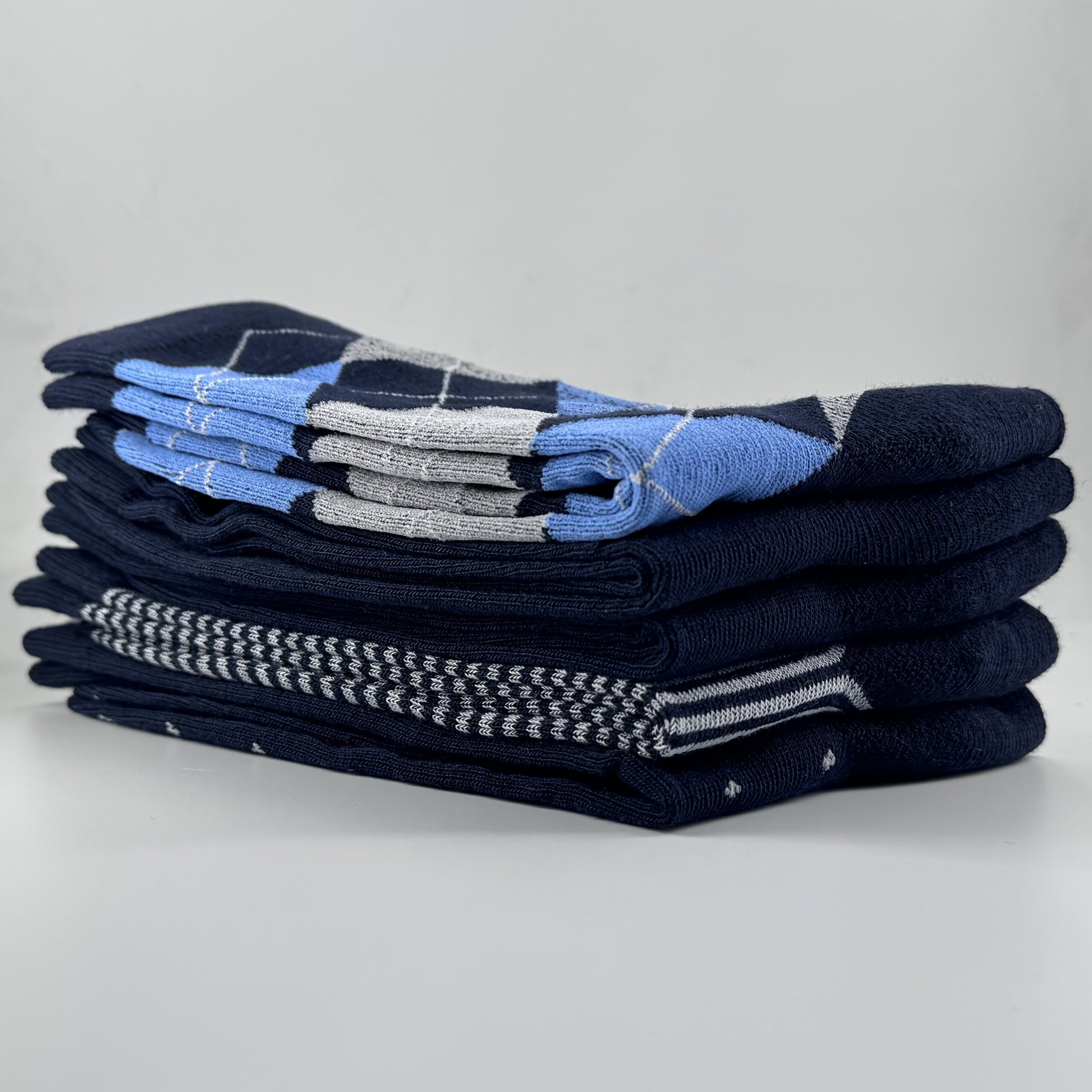 5 Paires de Chaussettes Mi-Mollet pour Hommes à Motif Losange Bleu Uni
