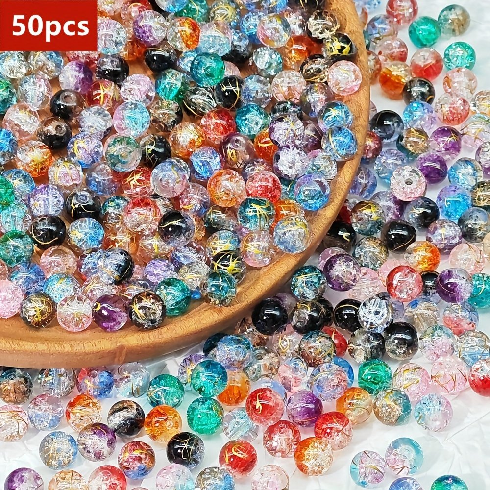 50 pièces perles rondes rayées dorées craquelées 8mm – & mélange de perles pour création de bijoux DIY, bracelets, colliers, boucles d'oreilles – perles artisanales à texture craquelée pour bracelets à breloques & petits cadeaux 50 perles