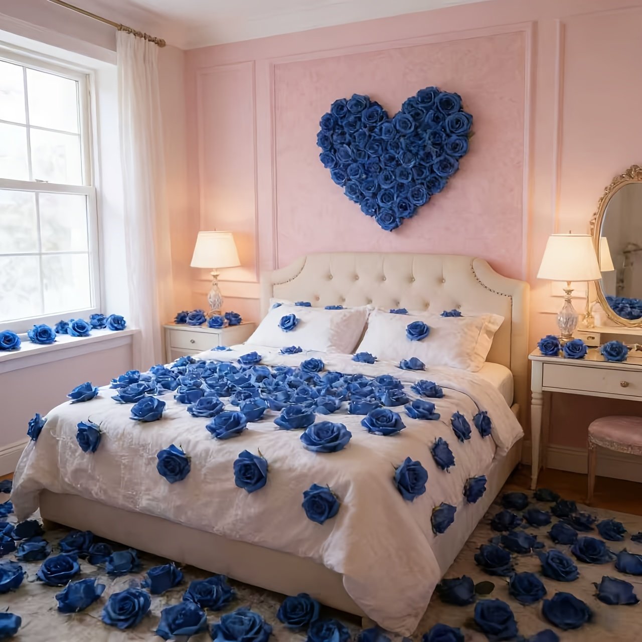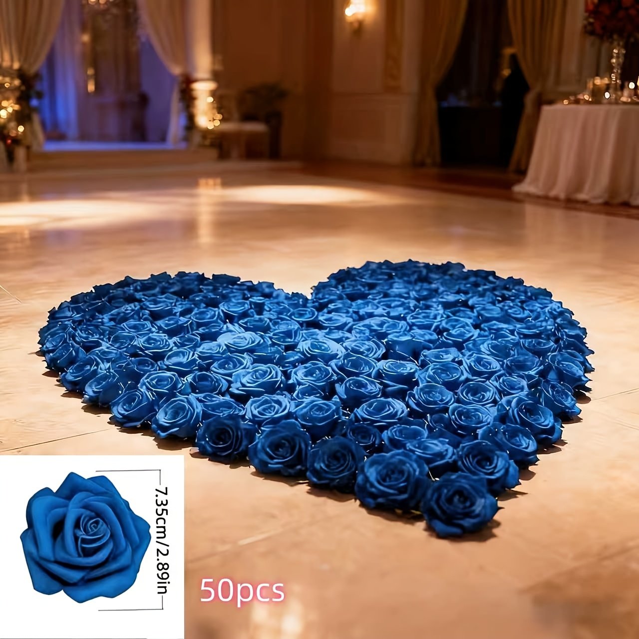 50 Roses Artificielles Bleu Royal, Fleurs en Mousse Plastique pour Centres de Table DIY, Décoration d'Intérieur, Saisons et Noël, Artisanat pour la Saint-Valentin, Décorations Polyvalentes pour Fêtes et Célébrations