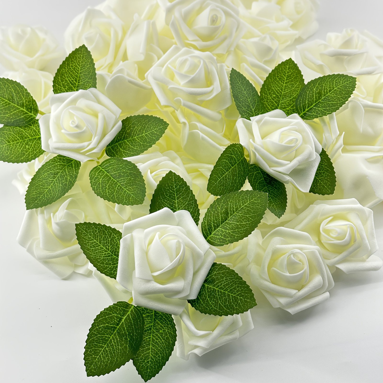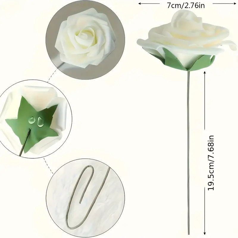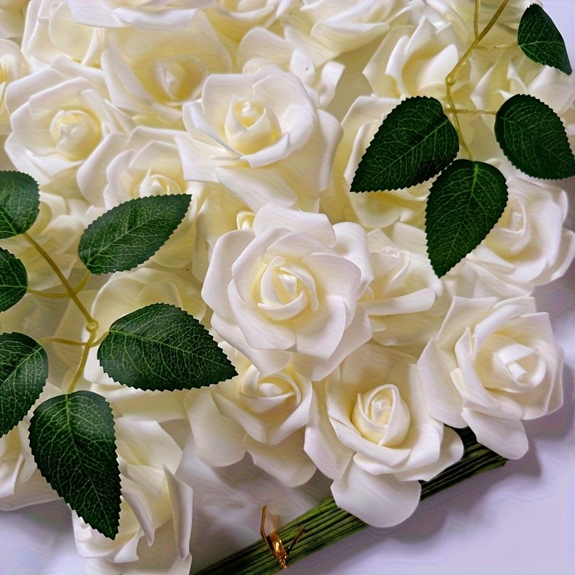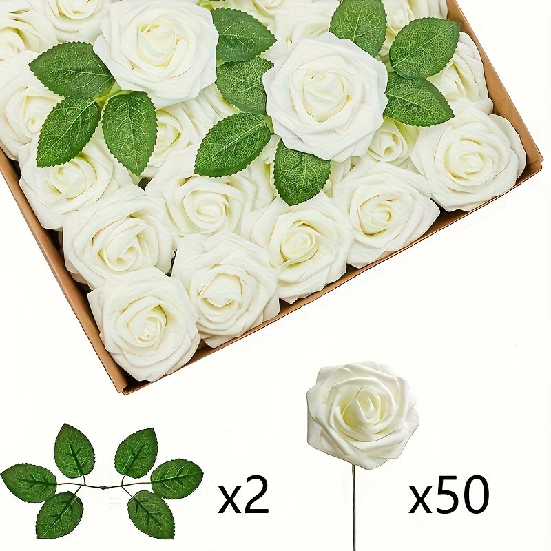 50 Tiges de Roses Blanches | Roses Artificielles Hautement Réalistes avec Matériau en Mousse Naturelle | Parfaites pour Bouquets de Mariage DIY / Cadeaux de Mariée | Idéales pour Mariages, Saint-Valentin, Anniversaires & Décorations de Fêtes | Décoration