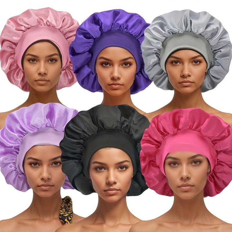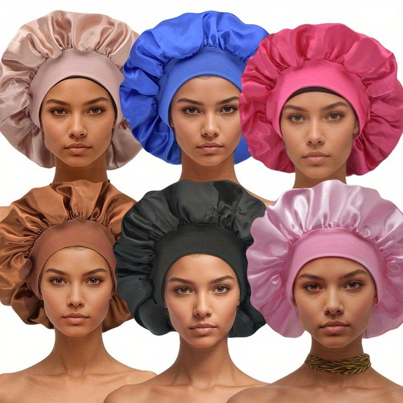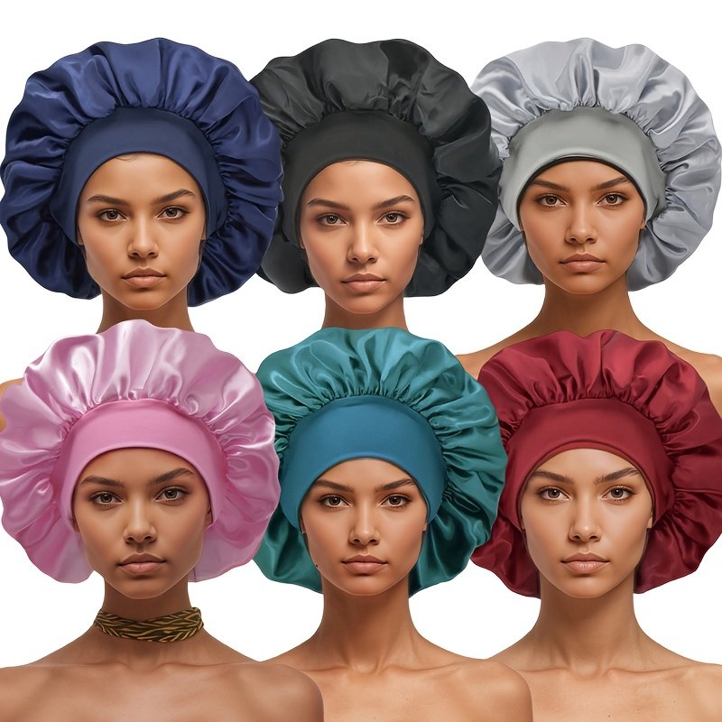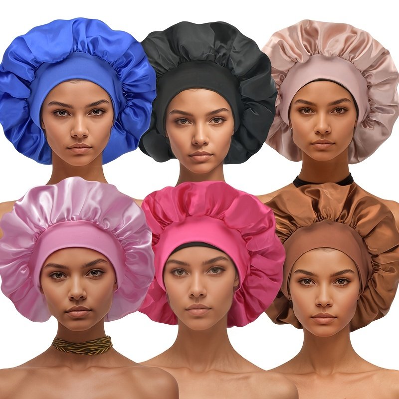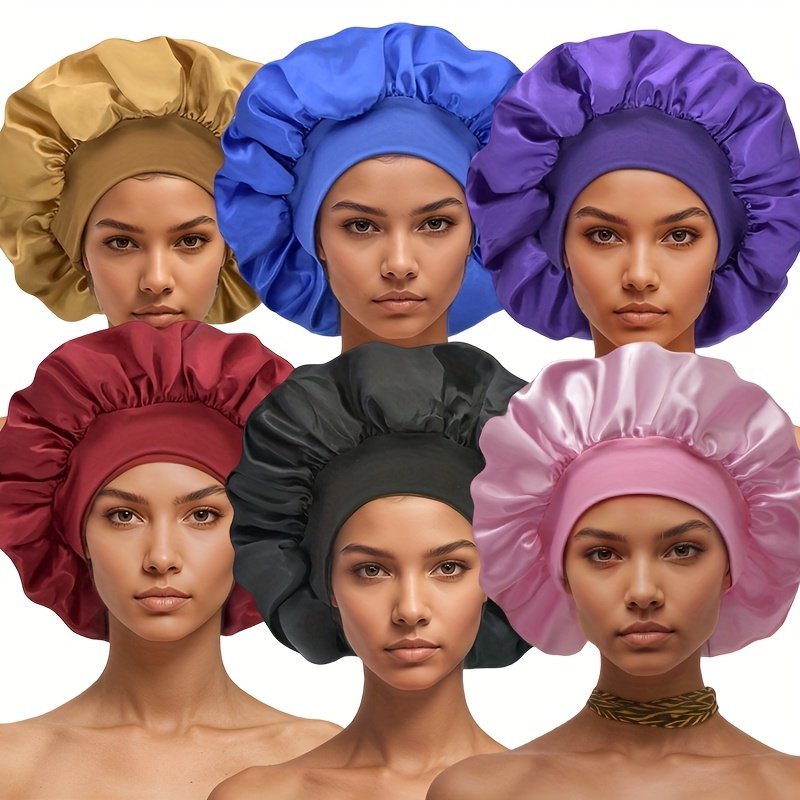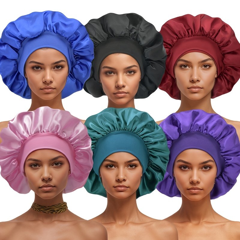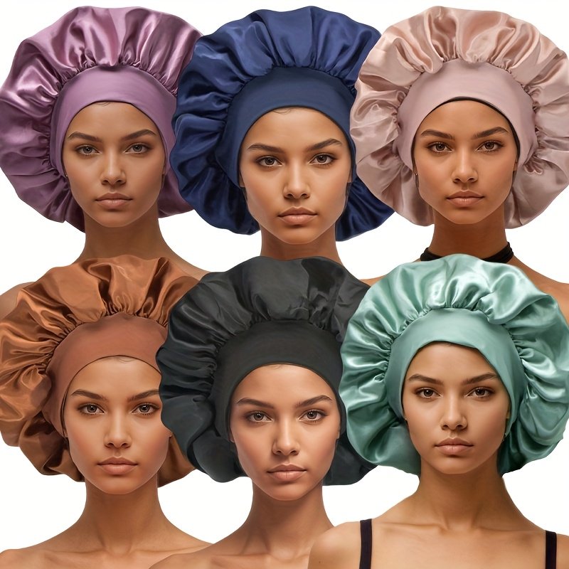 6 Bonnets en Satin pour Femmes avec Large Bord Élastique – Bonnet de Nuit pour la Protection des Cheveux, 6 Couleurs, Bande Élastique Confortable et Respirante, Essentiels pour le Printemps/Automne et les Voyages, Tenue Décontractée