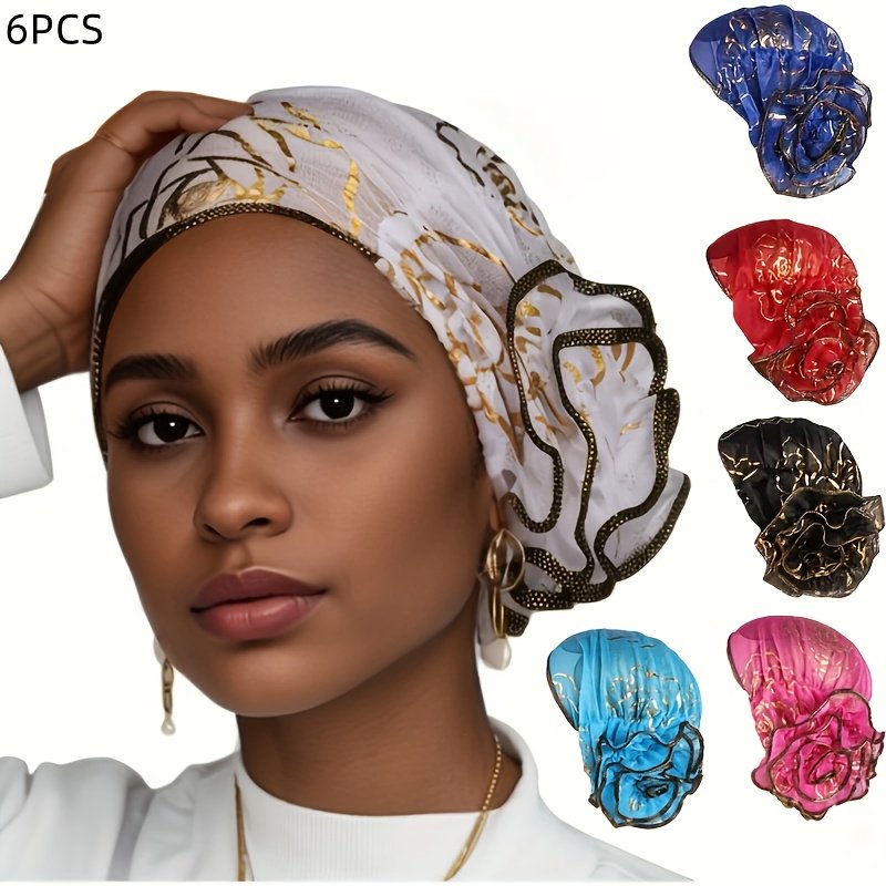 6 bonnets-turbans souples élastiques vintage pour cheveux de femme