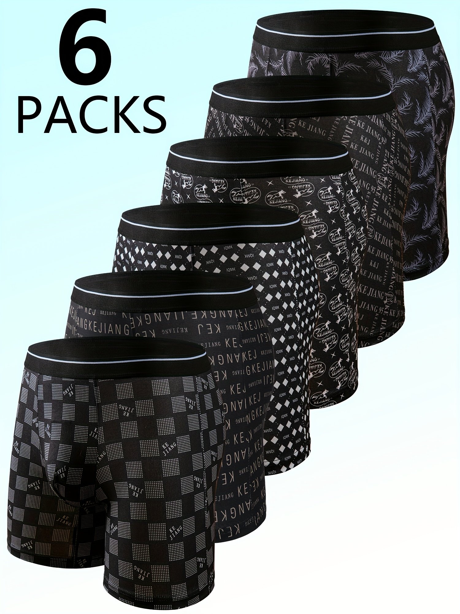 6 boxers extensibles pour hommes – Respirants et confortables, imprimé noir et blanc
