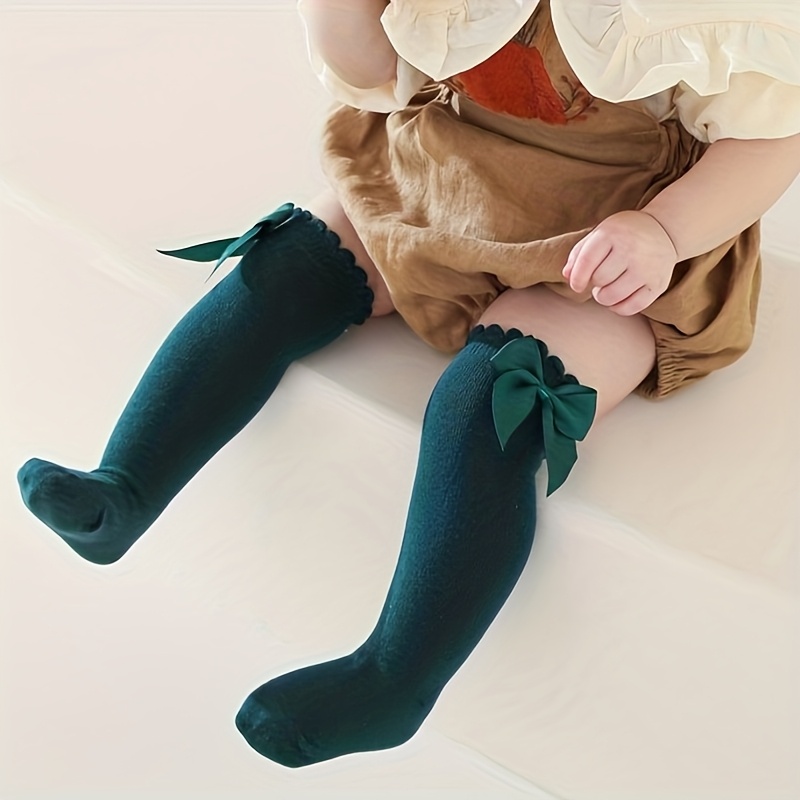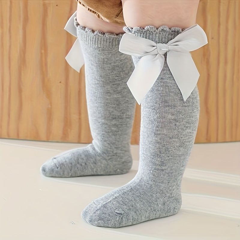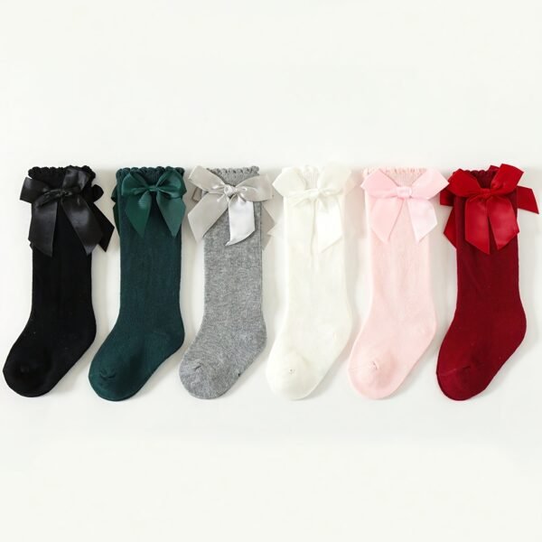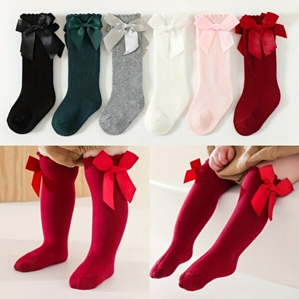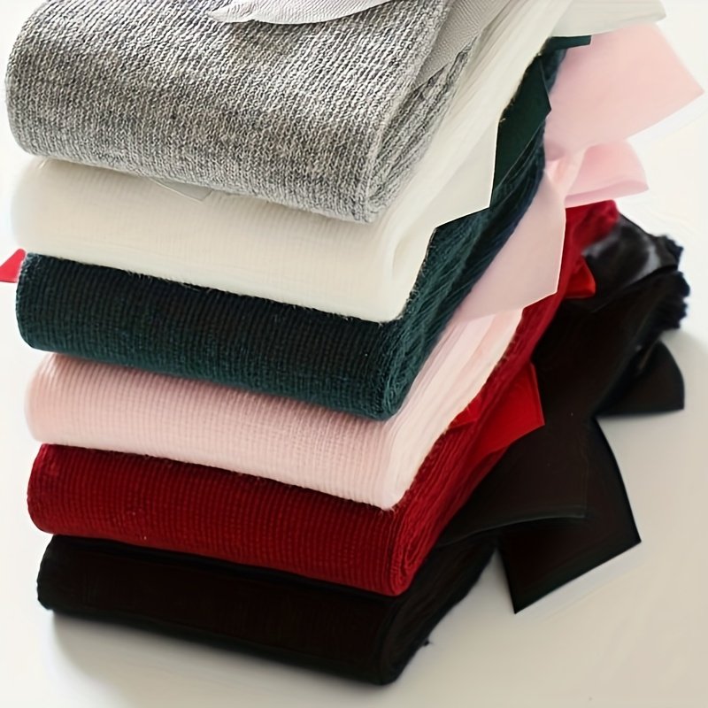 6 Paires de Chaussettes Hautes Unies pour Filles avec un Nœud, Style Académie de Princesse