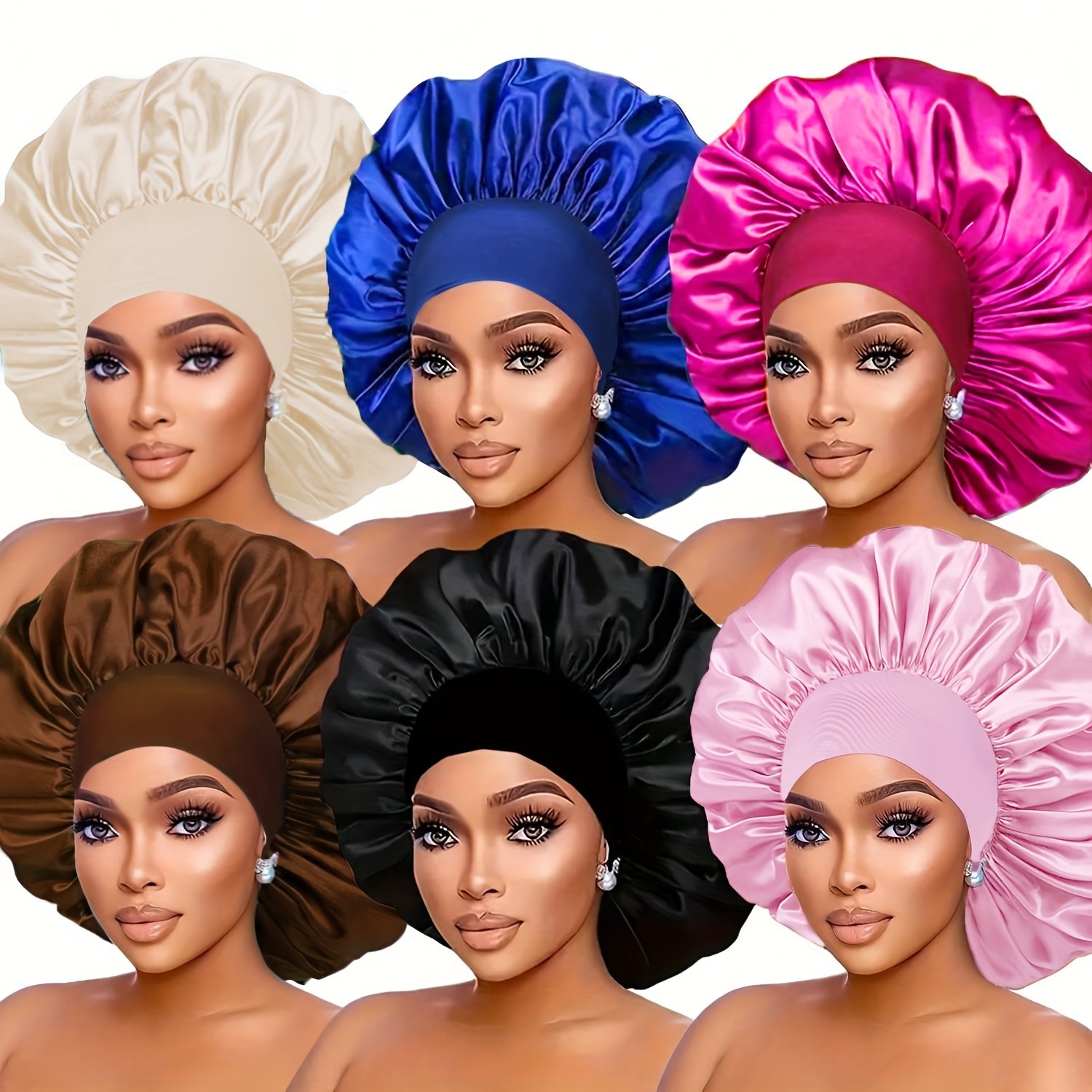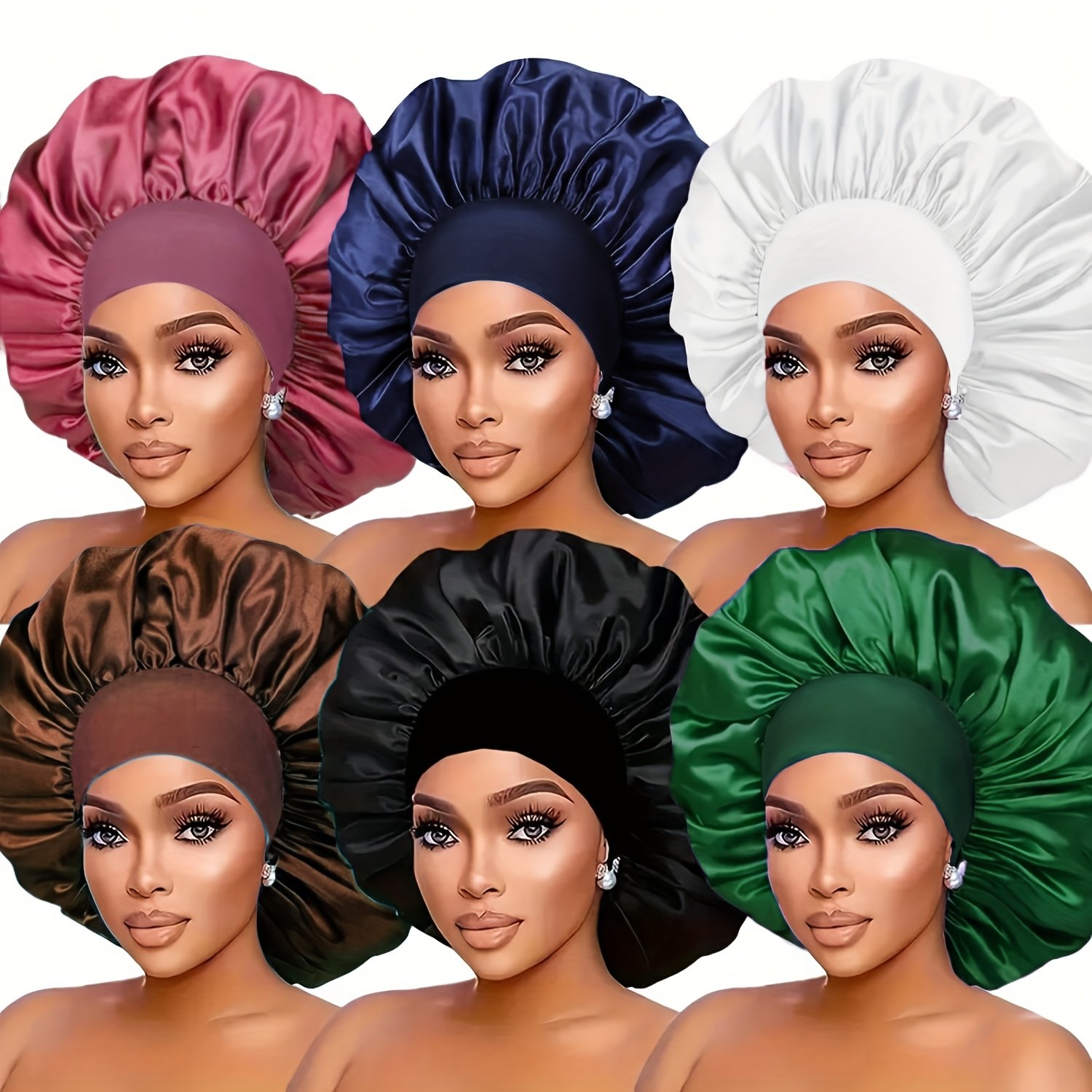6 pièces Bonnet en Satin AWEGEO pour Femmes avec Large Bord Élastique – Bonnet de Nuit Respirant Idéal pour Voyage, Spa, Usage Quotidien | Chapeau Élégant de Protection Capillaire, Accessoire Printemps/Automne
