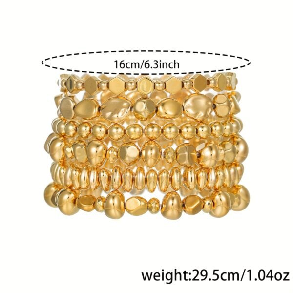 6pcs Ensemble de bracelets en perles d’acrylique irrégulières dorées et argentées, style élégant et simple, matériau principal : acrylique, occasion : port quotidien, occasion de cadeau, vacances : aucune, saison : toutes les saisons