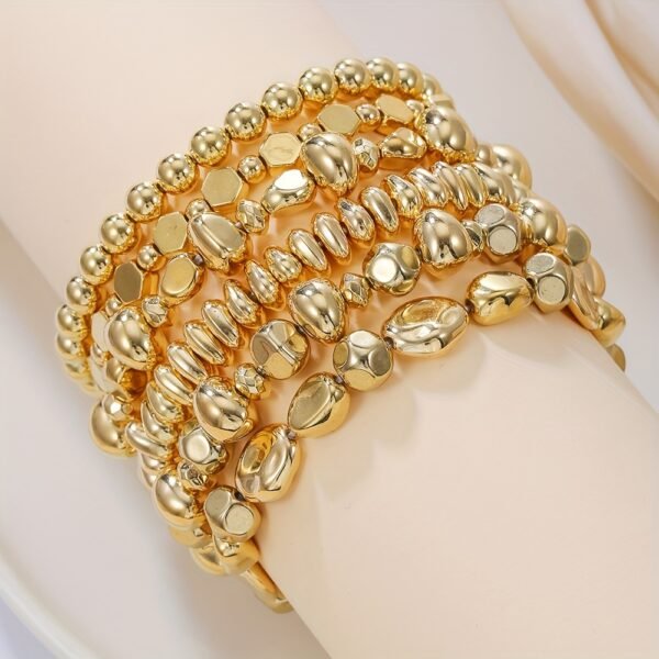 6pcs Ensemble de bracelets en perles d’acrylique irrégulières dorées et argentées