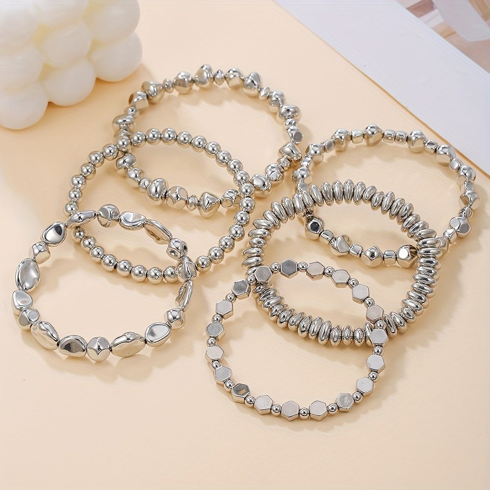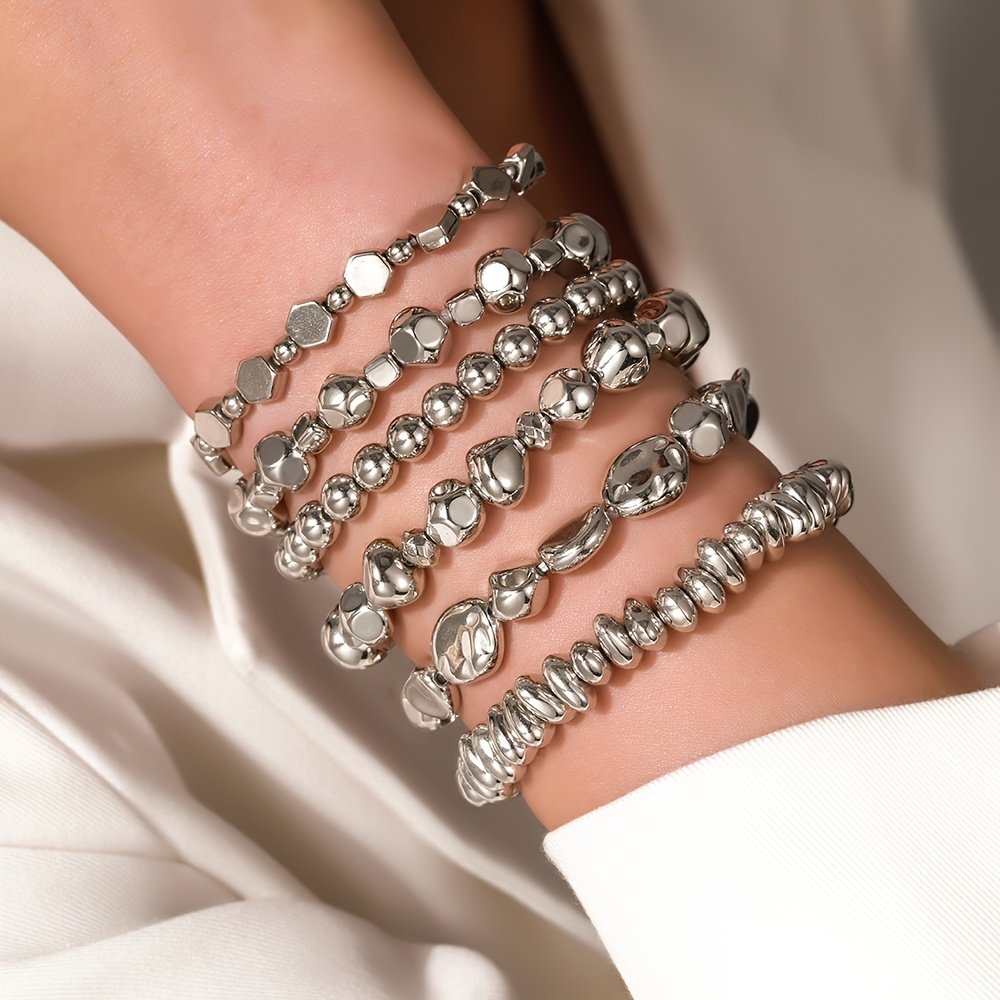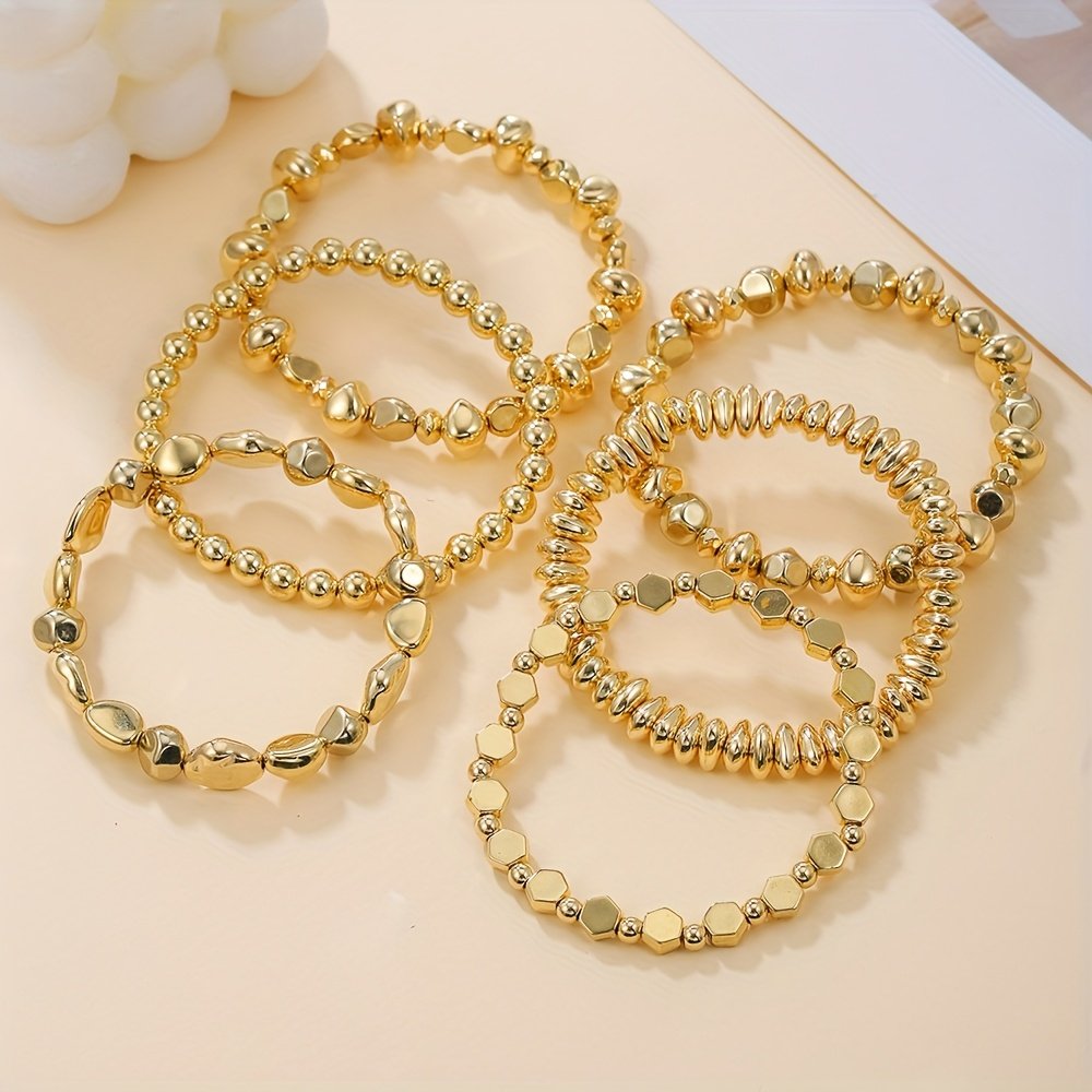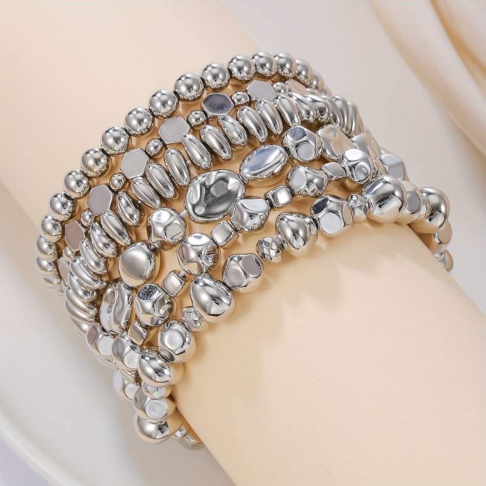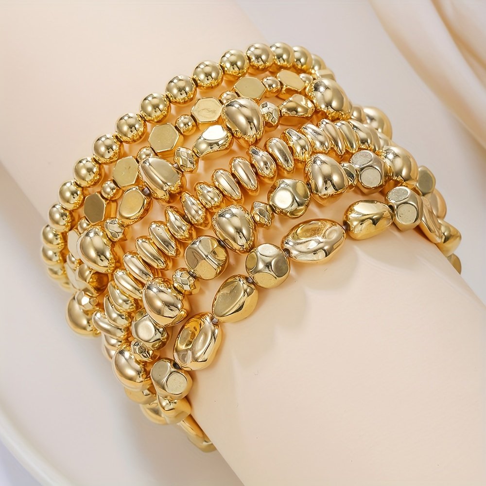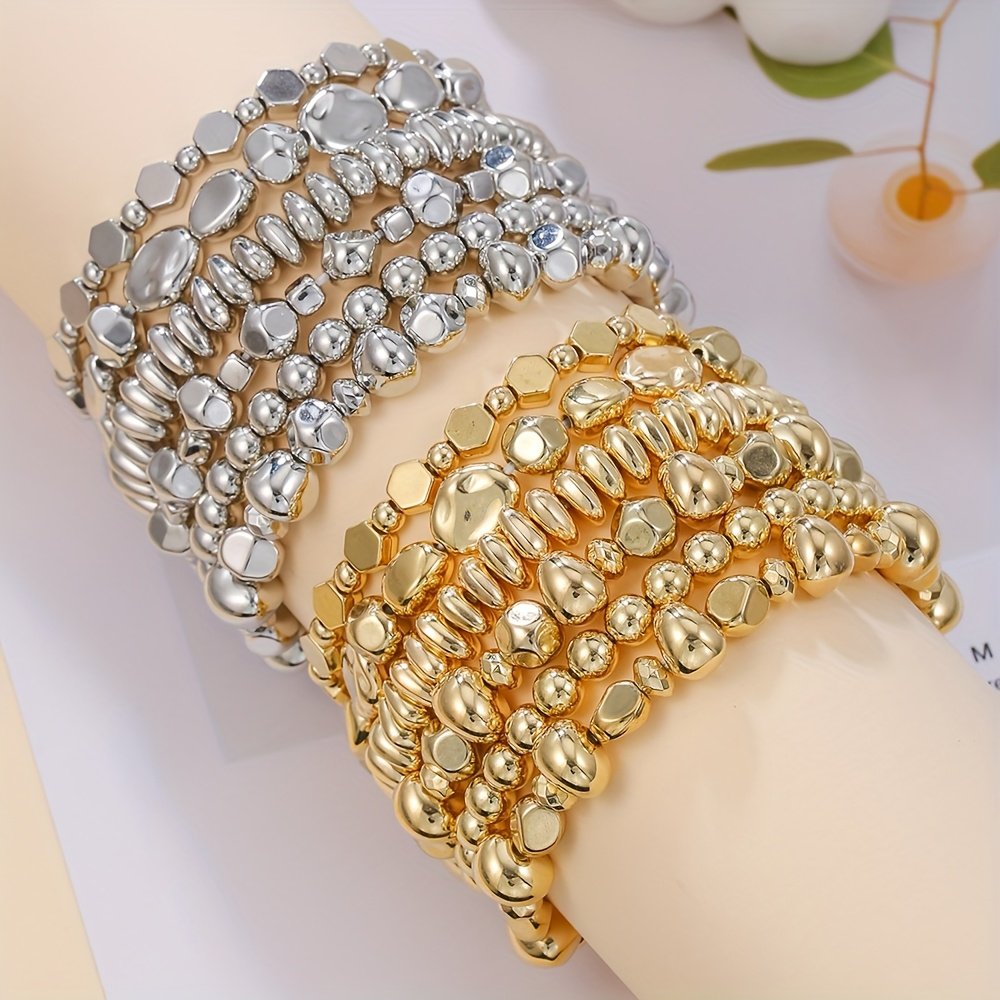 6pcs Ensemble de bracelets en perles d’acrylique irrégulières dorées et argentées, style élégant et simple, matériau principal : acrylique, occasion : port quotidien, occasion de cadeau, vacances : aucune, saison : toutes les saisons
