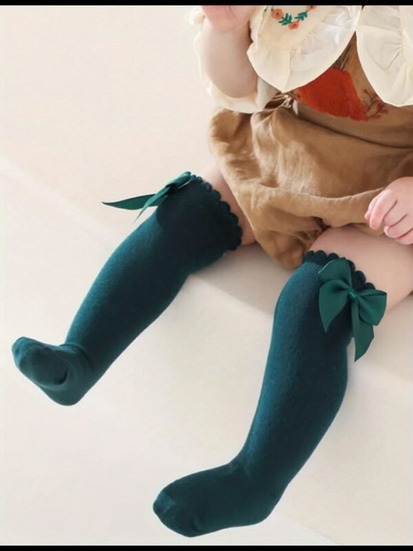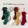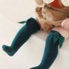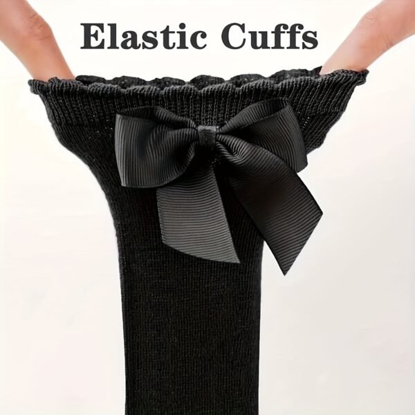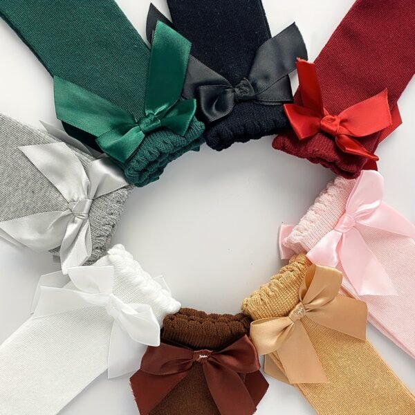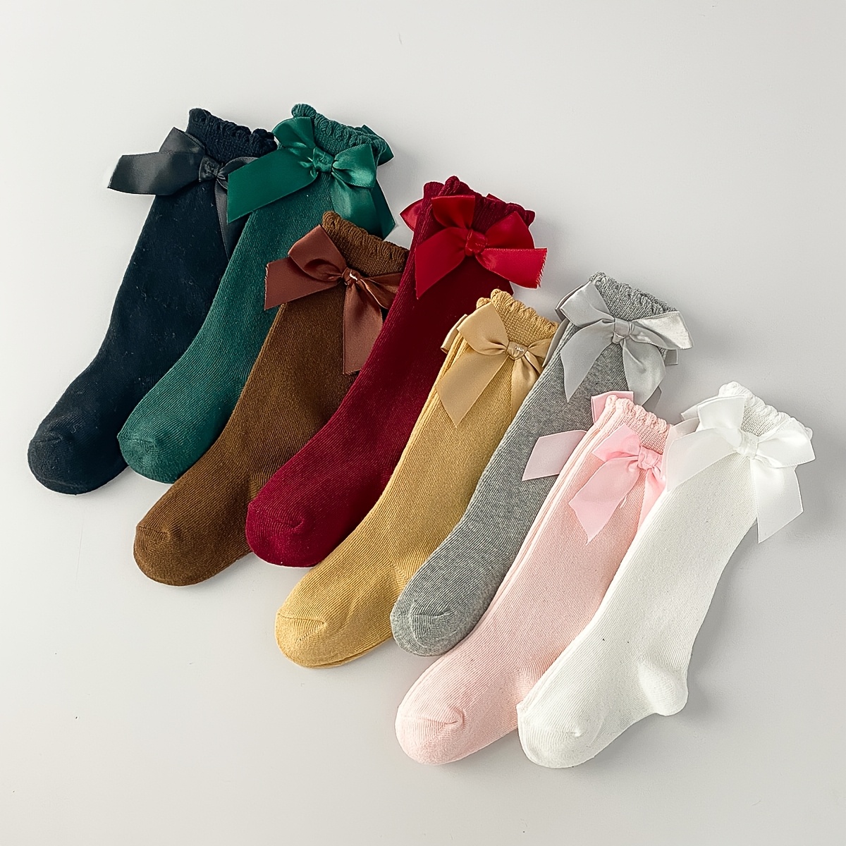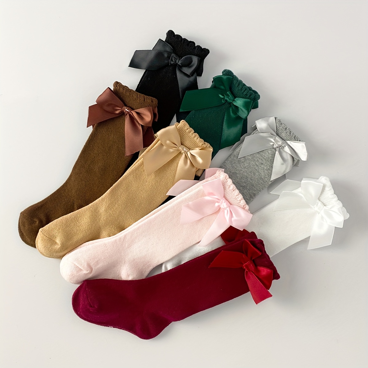 8 Paires de Chaussettes Hautes pour Filles en Couleur Unie avec Nœud Décoratif, Confortables, Respirantes, Douces et Antidérapantes pour le Quotidien et l’Extérieur, Printemps & Été