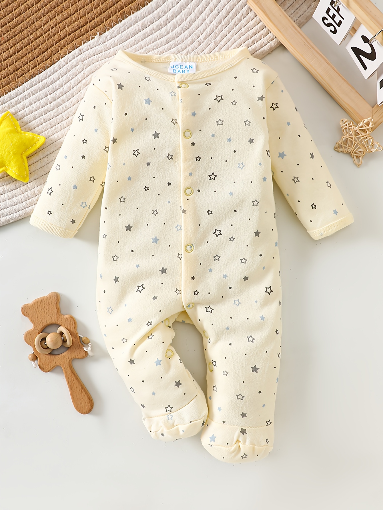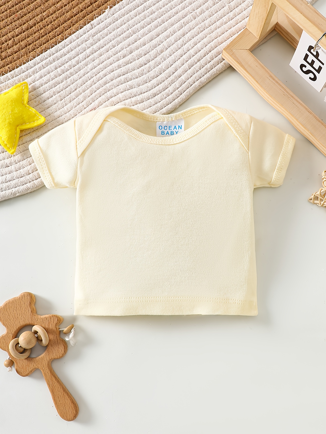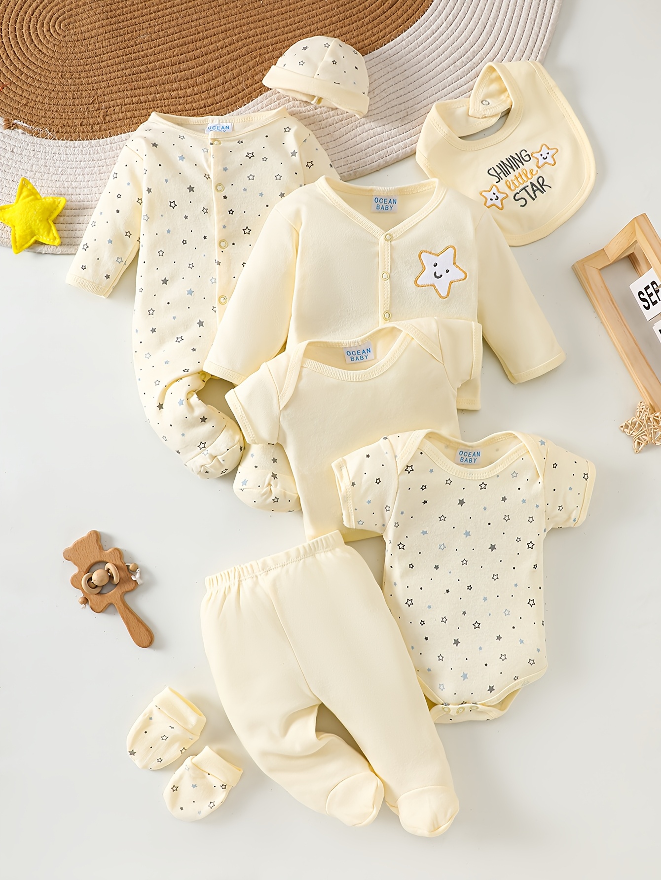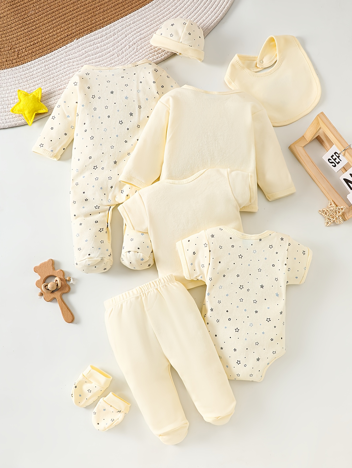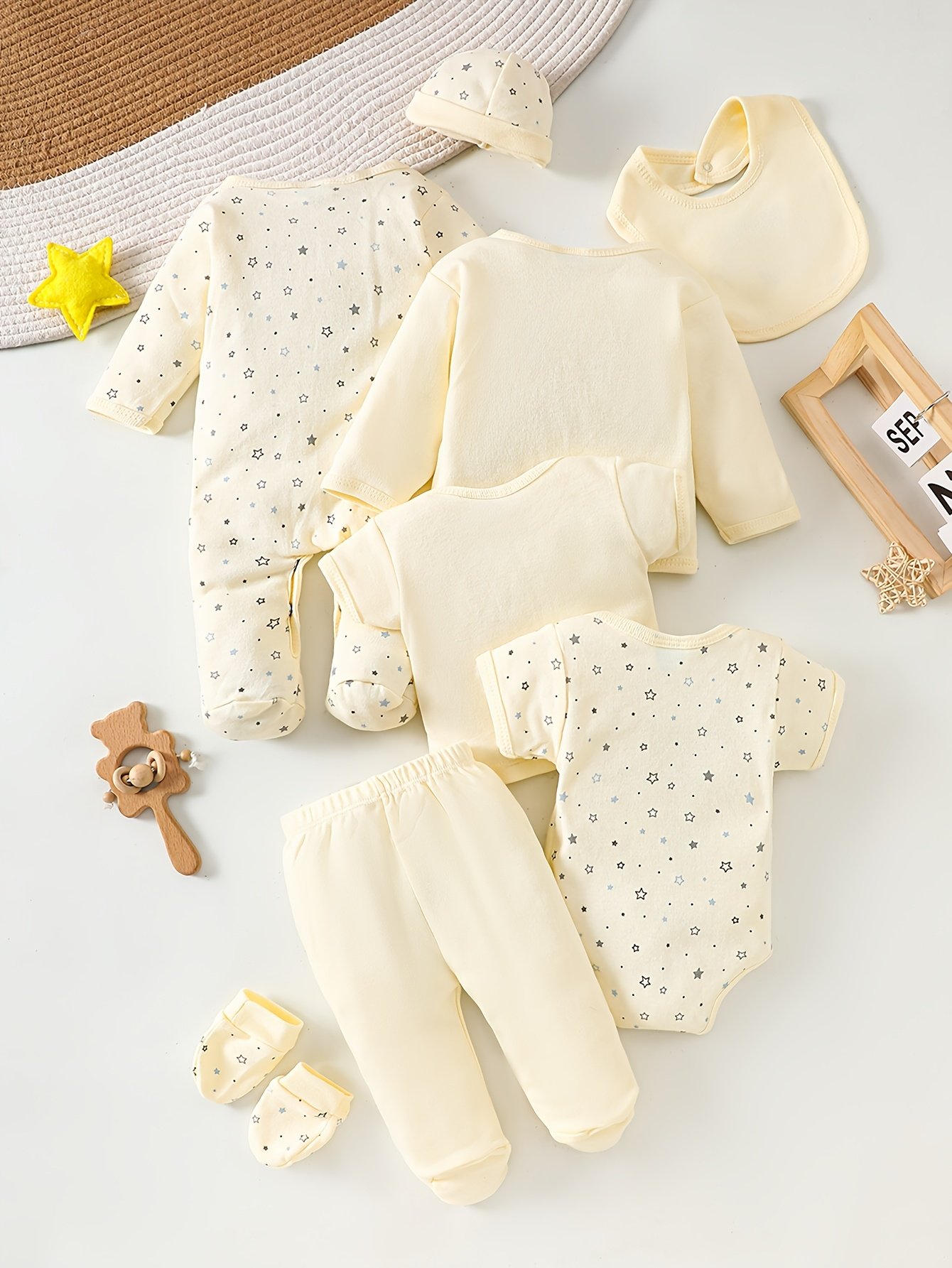 8 pièces Ensemble de Bodys pour Bébé Fille, 100% Coton, Confortable et Respirant, Jaune Crème Frais avec Motif Étoiles, Adapté de 0 à 9 Mois pour Intérieur et Extérieur, Idéal comme Cadeau, Parfait pour l’Extérieur