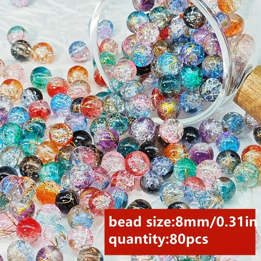 80 pièces Perles Acryliques Multicolores à Rayures Craquelées pour Fabrication de Bracelets, Décorations, Cadeaux, Fournitures de Bijoux DIY