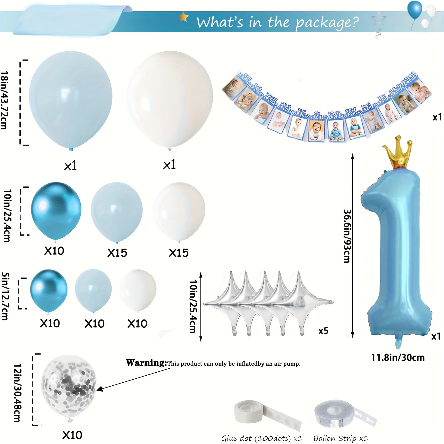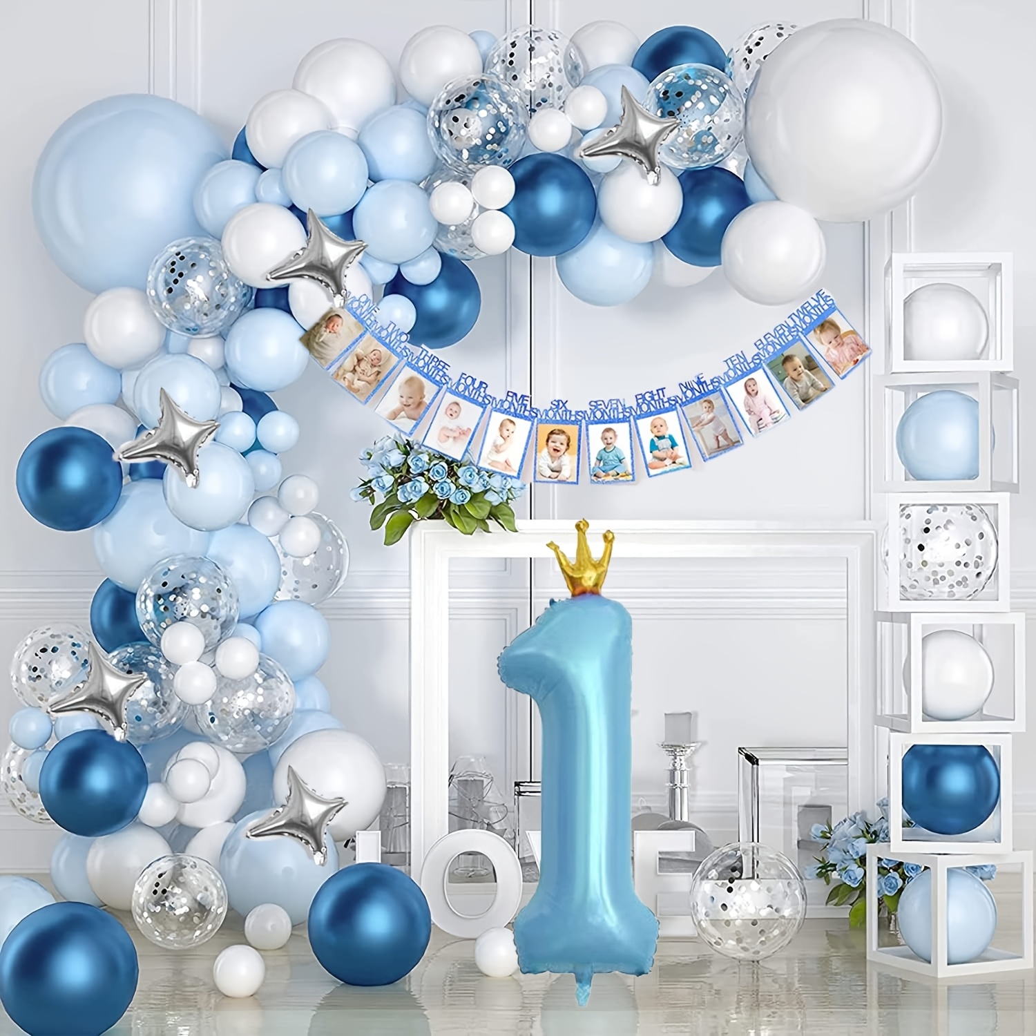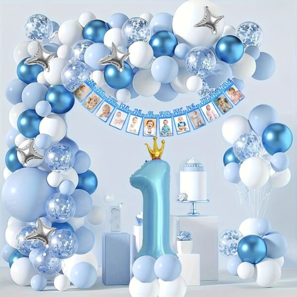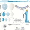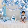 89 Pièces Guirlande de Ballons Bleu et Blanc avec Chiffre 1