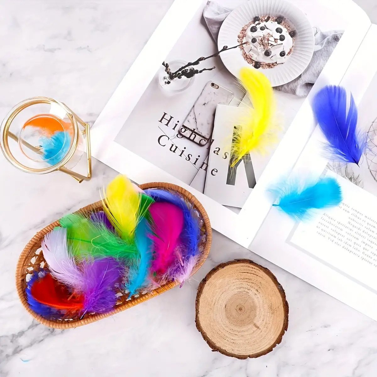 98-102pcs de Petites Plumes Colorées pour Artisanat, Plumes de Géese Flottantes pour Costumes de Mariage, Noël, Halloween, Festival, Décoration de Scène, Boîte Cadeau, Matériel de Remplissage, Fournitures