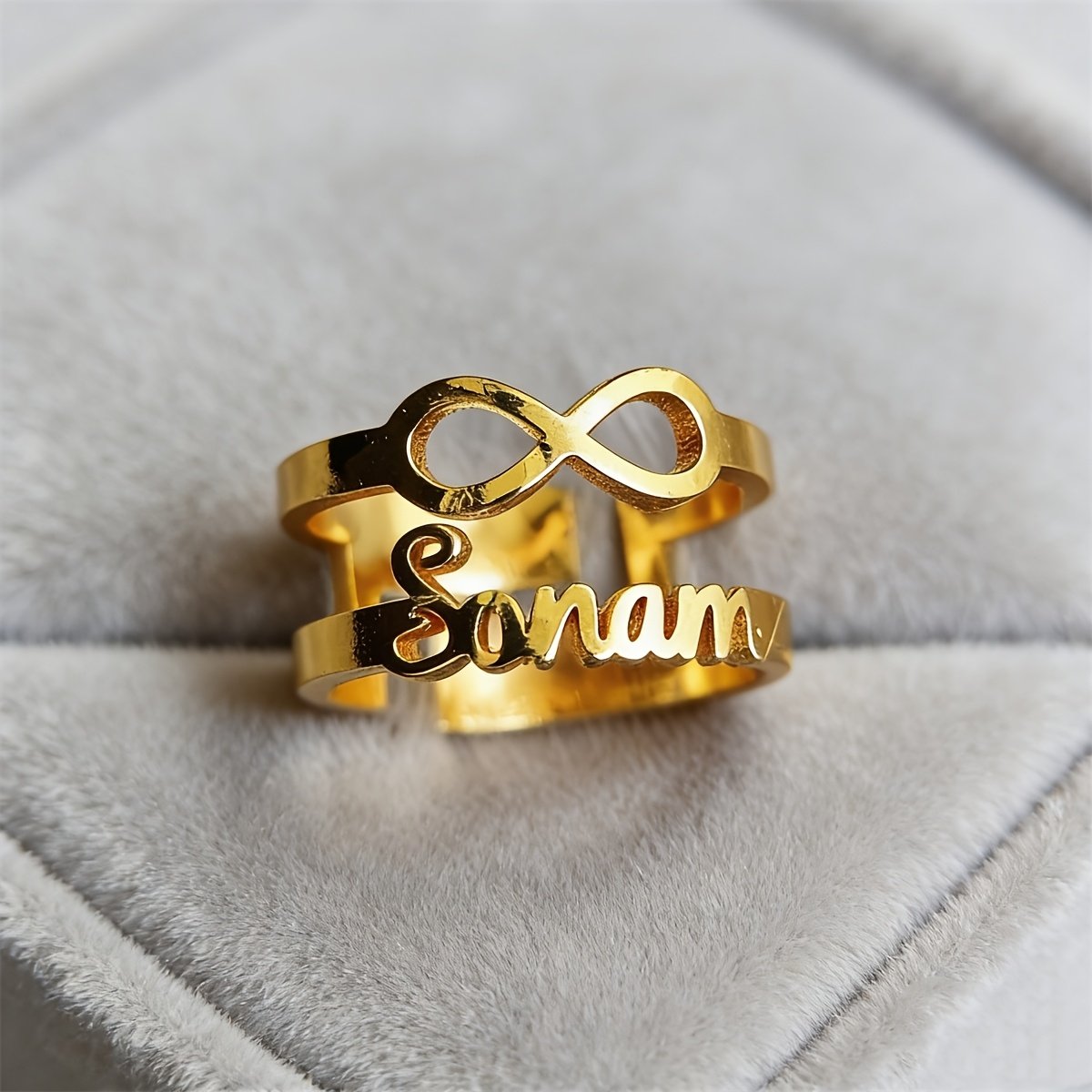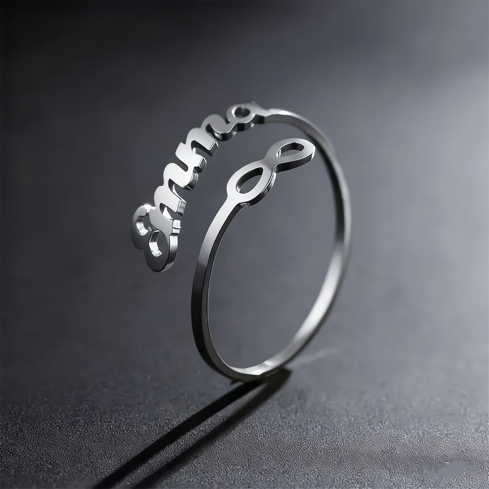 Bague Infini Personnalisable Nom – Double Couche Acier Inoxydable Gravure