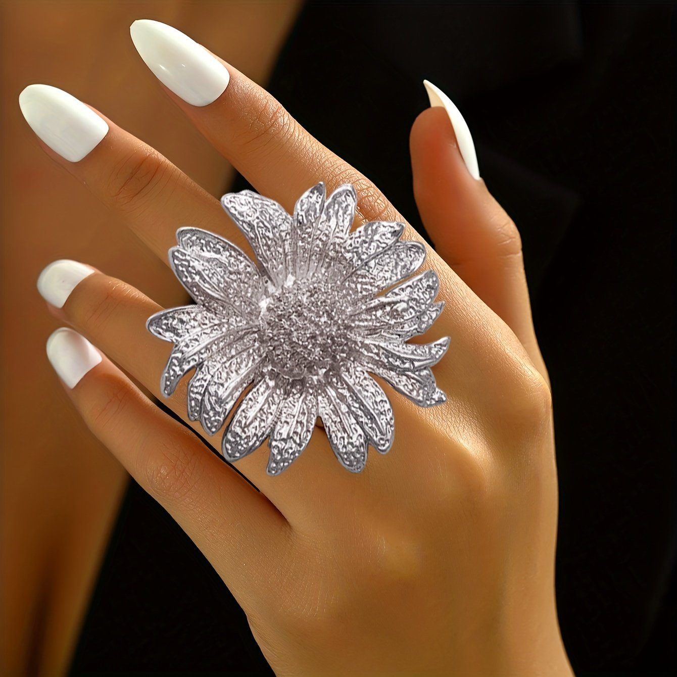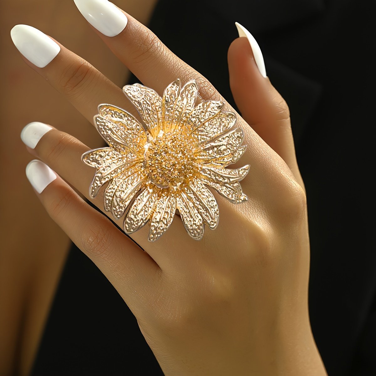 Bague tournesol élégante, design simple surdimensionné à la mode