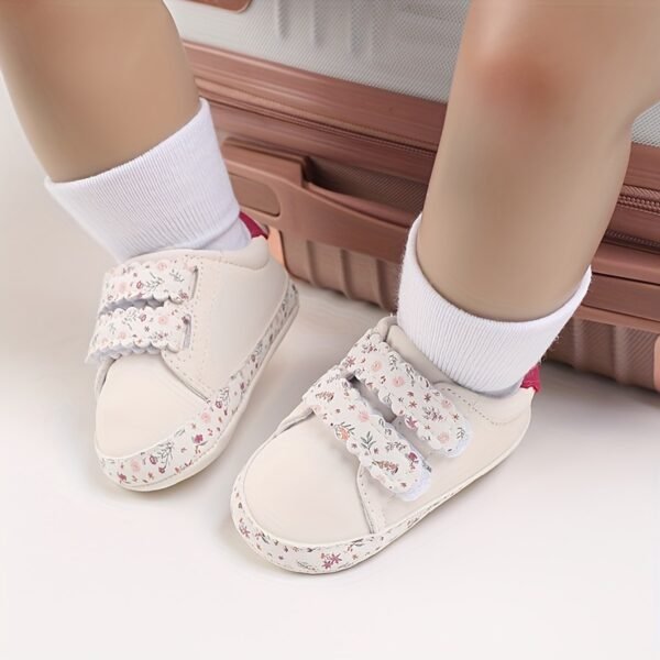 Baskets à enfiler à imprimé floral tendance pour bébés filles avec fermeture auto-agrippante réglable, chaussures de berceau habillées pour tout-petits avec couleurs assorties