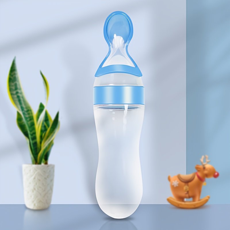 Biberon cuillère pour bébé en silicone avec cuillère, biberon pour lait en poudre et compléments alimentaires, cuillère à presser pour la distribution et l'alimentation, ustensiles d'alimentation polyvalents et un broyeur pour médicaments et aliments