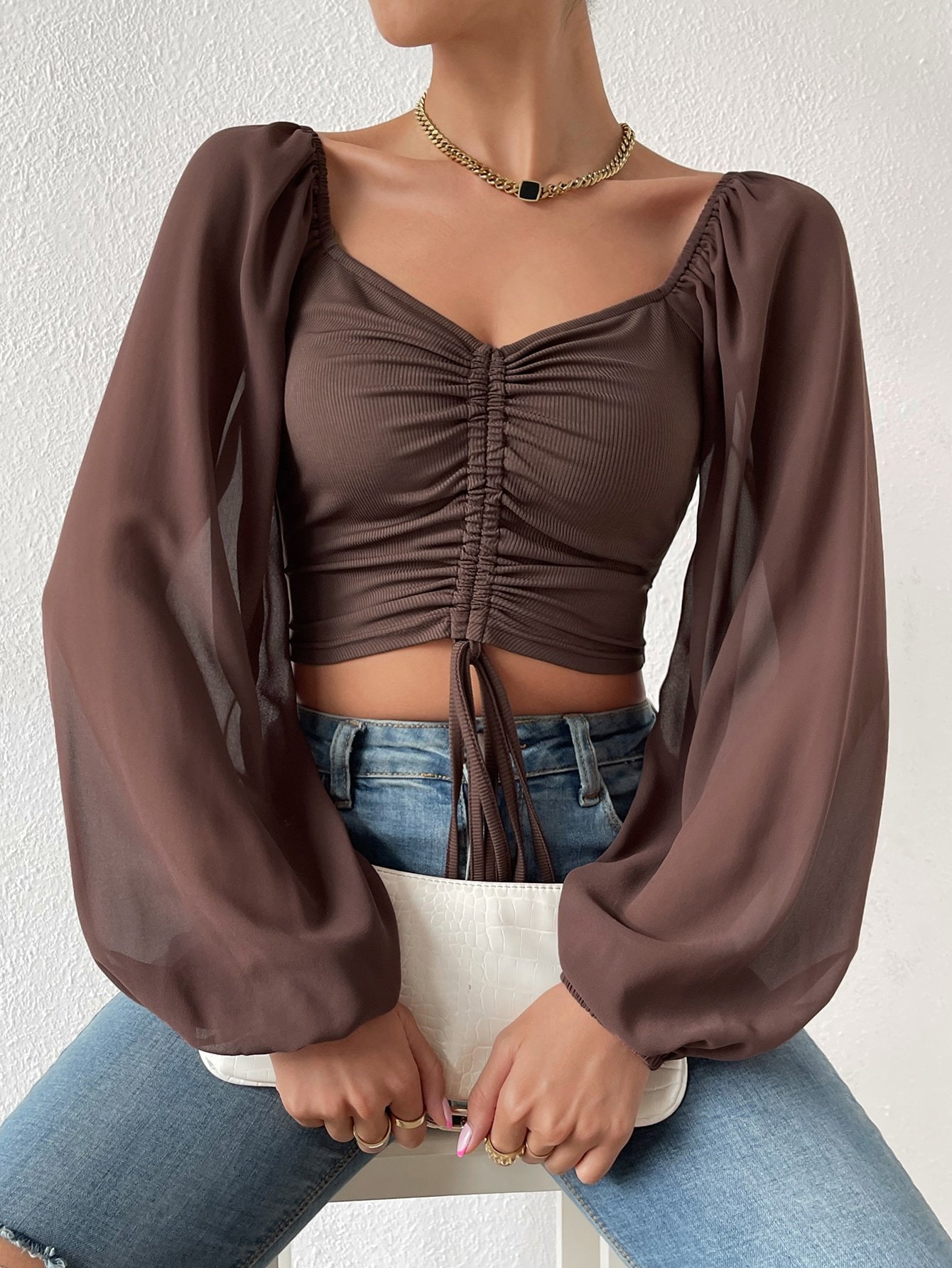 Détails : Tulle contrastant, Cordon, Tissu côtelé, Buste froncé