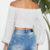 Blouse Élégante Femme à Manches Bouffantes et Bretelles Dénudées avec Ourlet Froncé