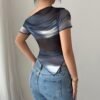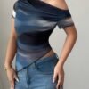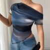 Blouse Femme à Manches Courtes Asymétrique Tie-Dye – Dégradé Bleu/Noir/Blanc/Marine, Haute Élasticité et Résistante aux Plis – Chemise Polyvalente pour Tenues Casual ou Formelles (Col Style Une-Épaule), Nouveaux Hauts pour Femmes, Chemises Lumineuses pour Femmes, Blusas Esthétique, Hauts à Croisement Devant pour Femmes, Chemises Dos Nu pour Femmes, Haut Imprimé, Hauts Imprimés, Haut de Variety pour Femmes, Hauts Lumineux pour Femmes, Blouse Crop Top pour Femmes, Chemises
