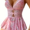 Body en dentelle sexy pour femme – Imprimé floral rose dos nu avec bretelles ajustables,
