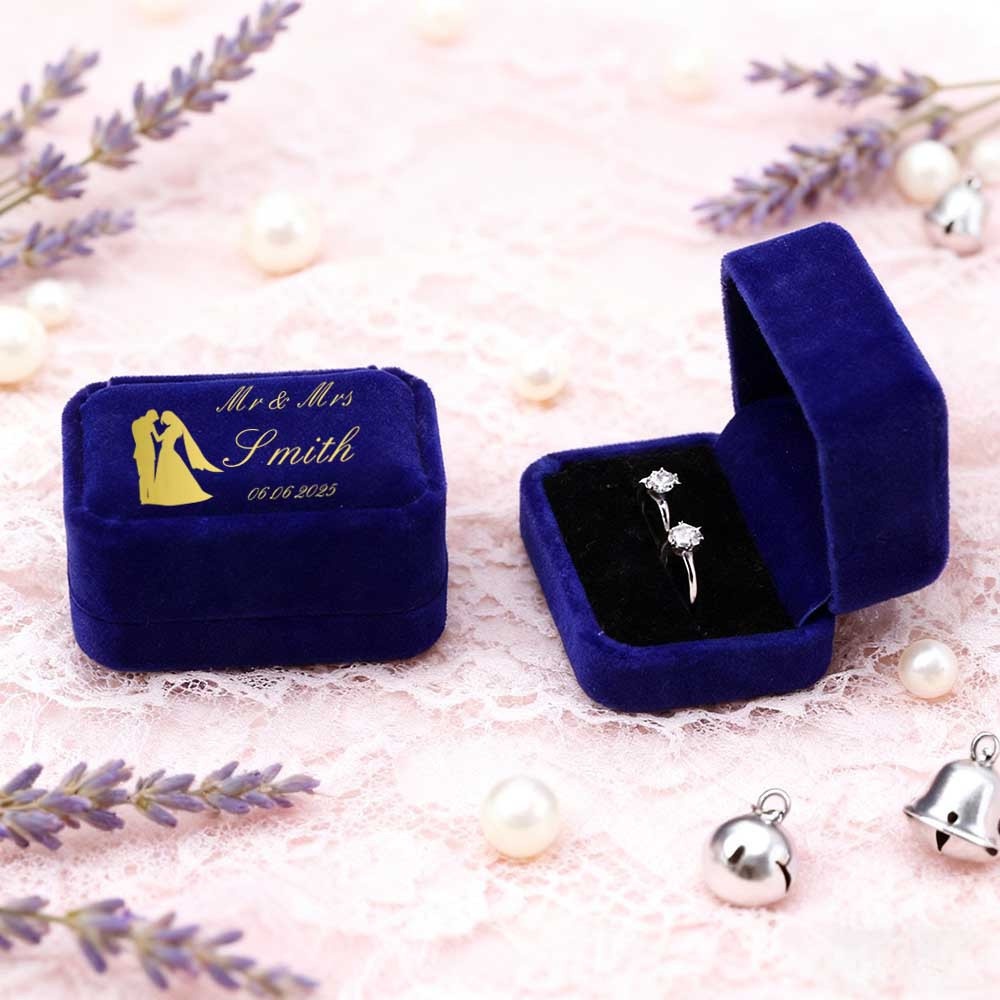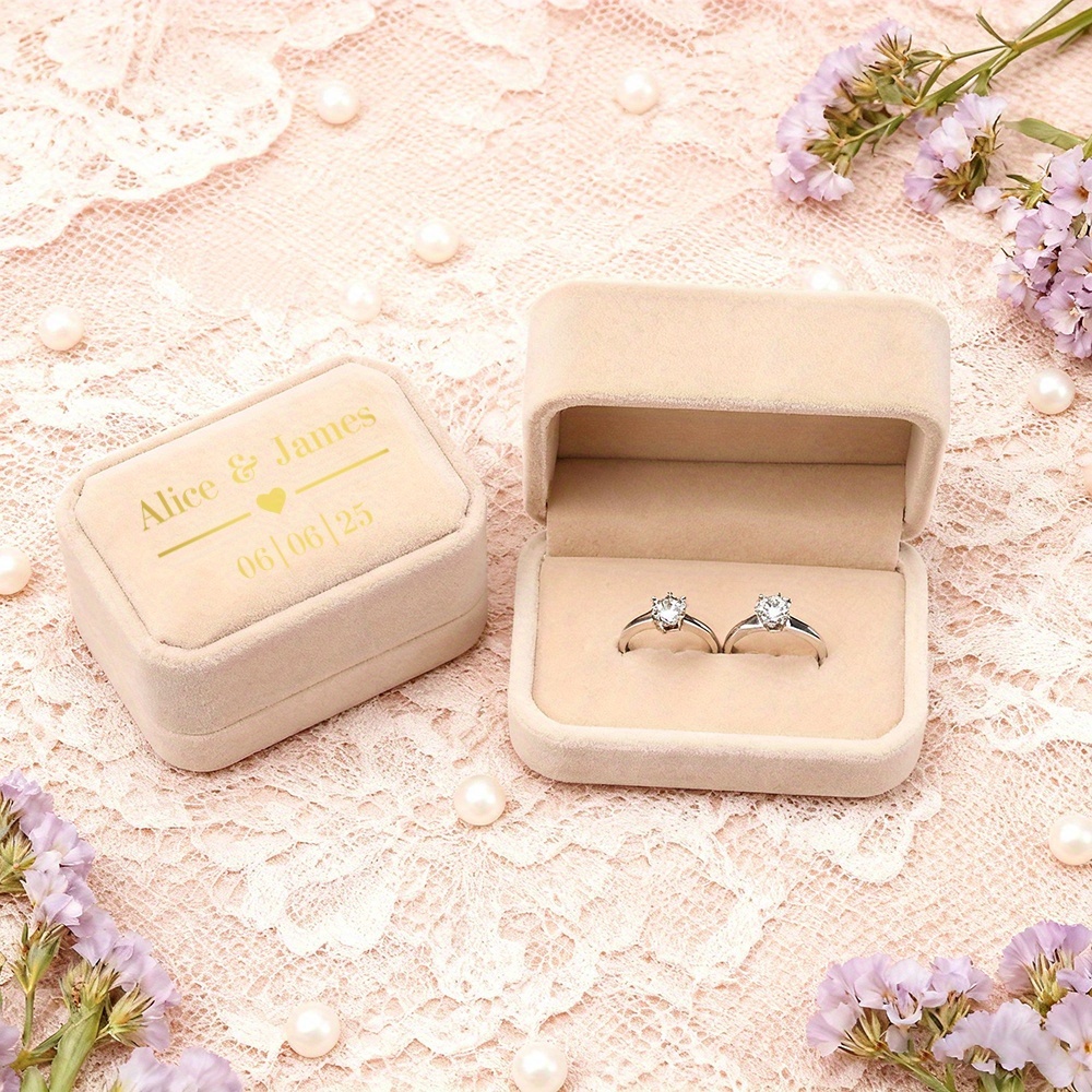 Boîte à bague en velours de luxe personnalisée avec support de bague de mariage