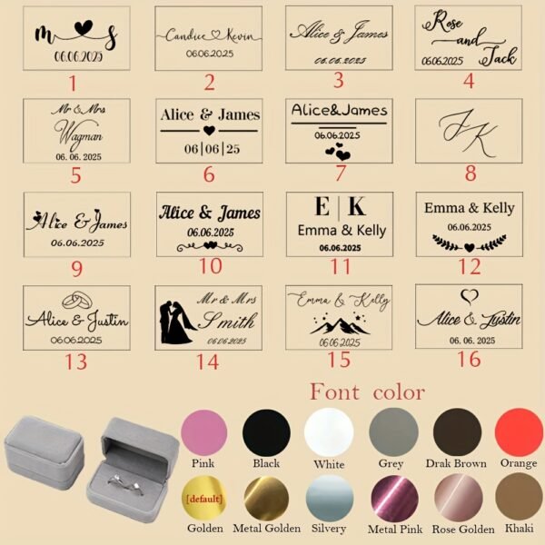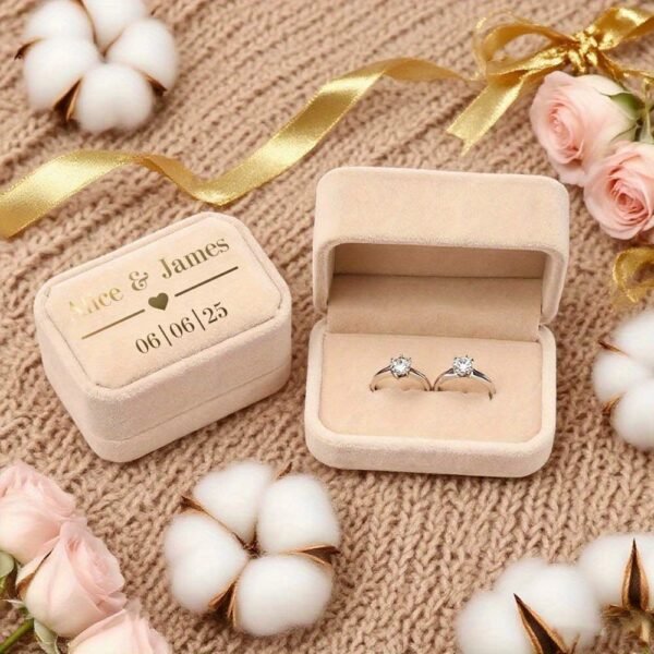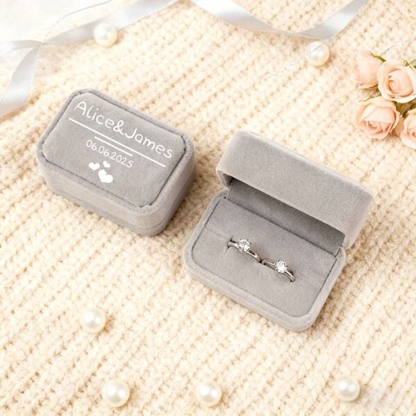 Soyez le premier à laisser votre avis sur “Boîte à bague en velours de luxe personnalisée avec support de bague de mariage”
