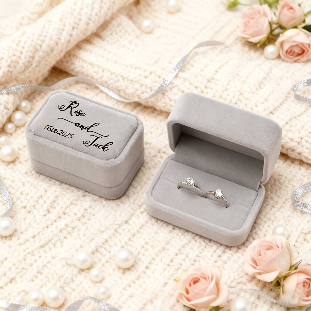 Transformez votre fiançailles, mariage ou anniversaire en une occasion inoubliable avec notre boîte à double anneau en velours personnalisée. Fabriqué