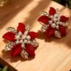 Boucles d’oreilles élégantes à strass et effet fleur