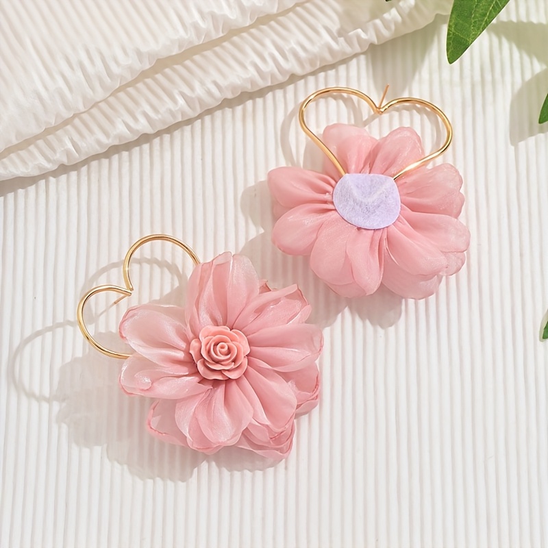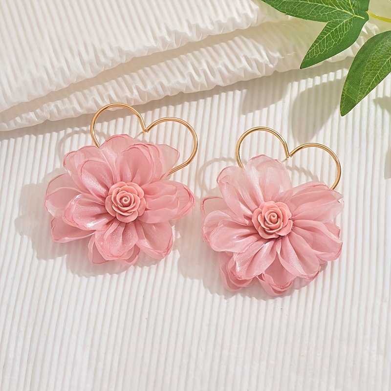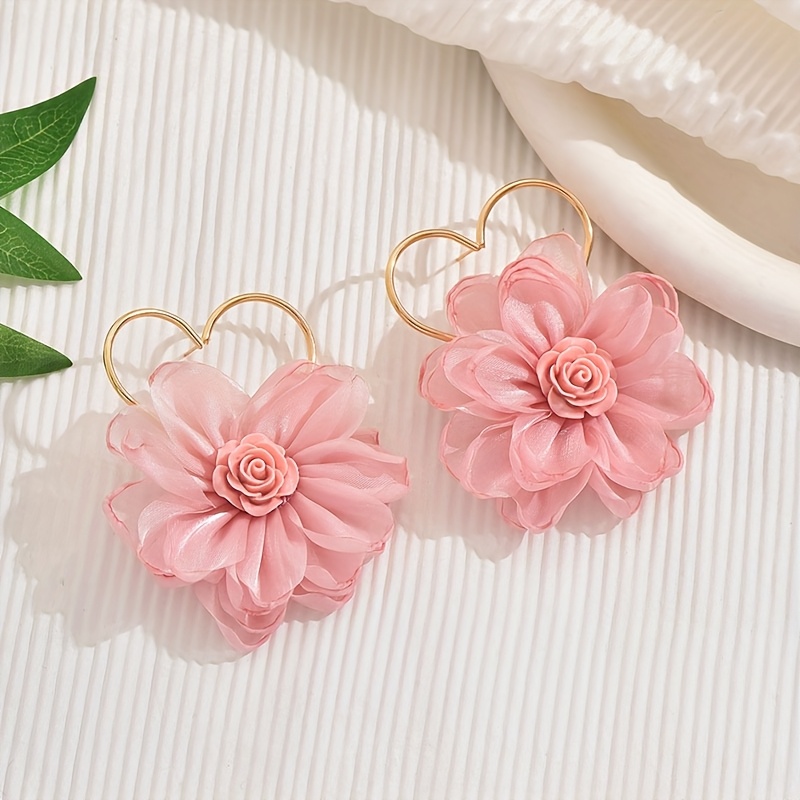 – Design Floral Rose Chic, Cadre Cœur Creux, Parfaites pour Tenue Décontractée ou Occasions Spéciales, Boucles d’Oreilles Mignonnes
