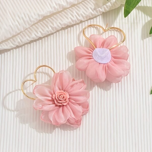 Boucles d’Oreilles Élégantes Cœur Doré et Fleur pour Femmes