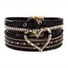 Bracelet bohème plusieurs niveaux en cuir PU, bracelet tressé fait main, bracelet femme Big Love doré