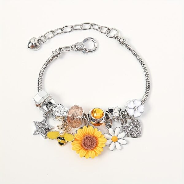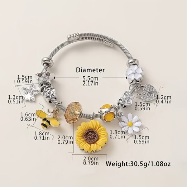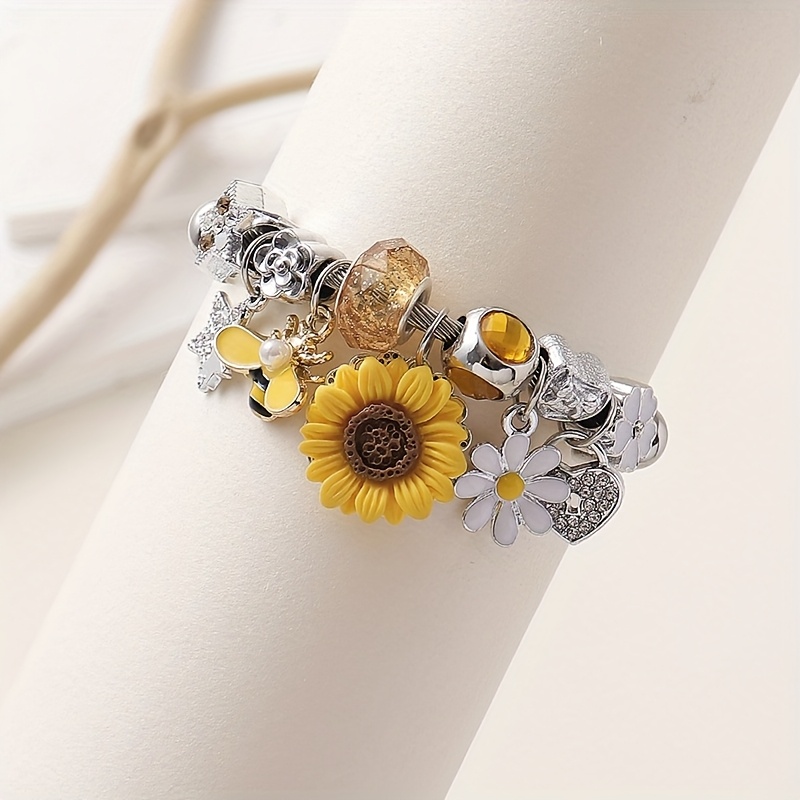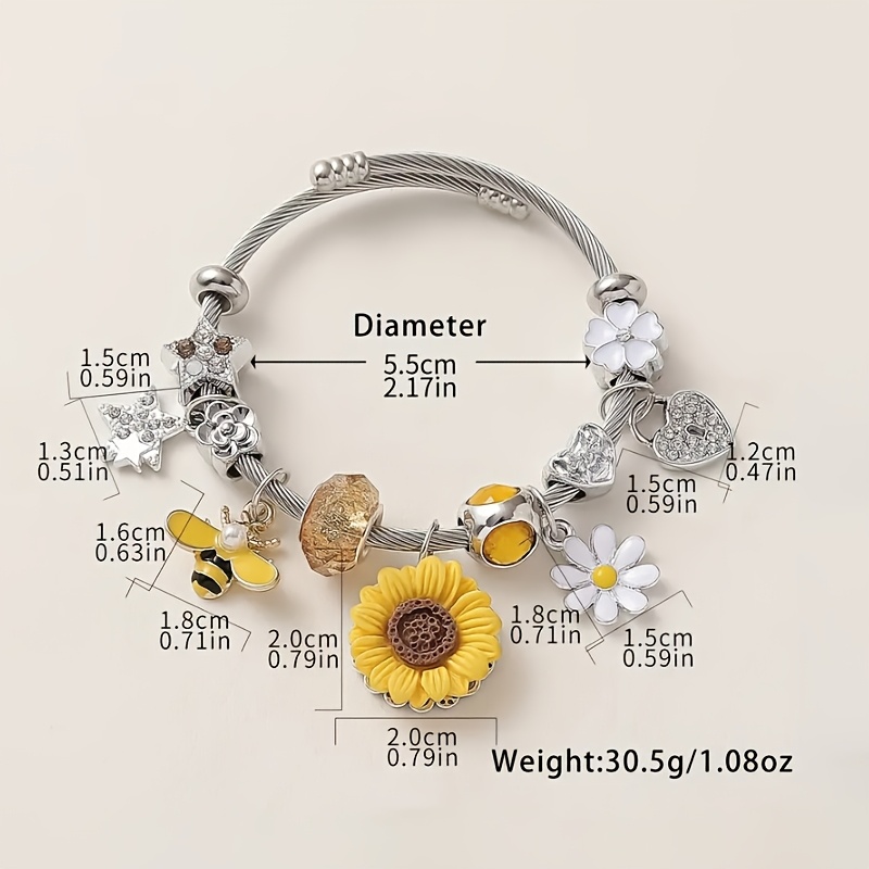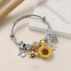 Bracelet ouvert ajustable avec des charmes de tournesol