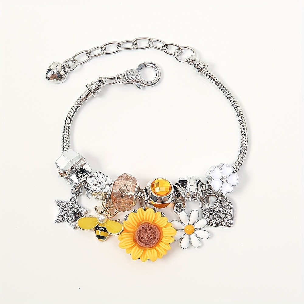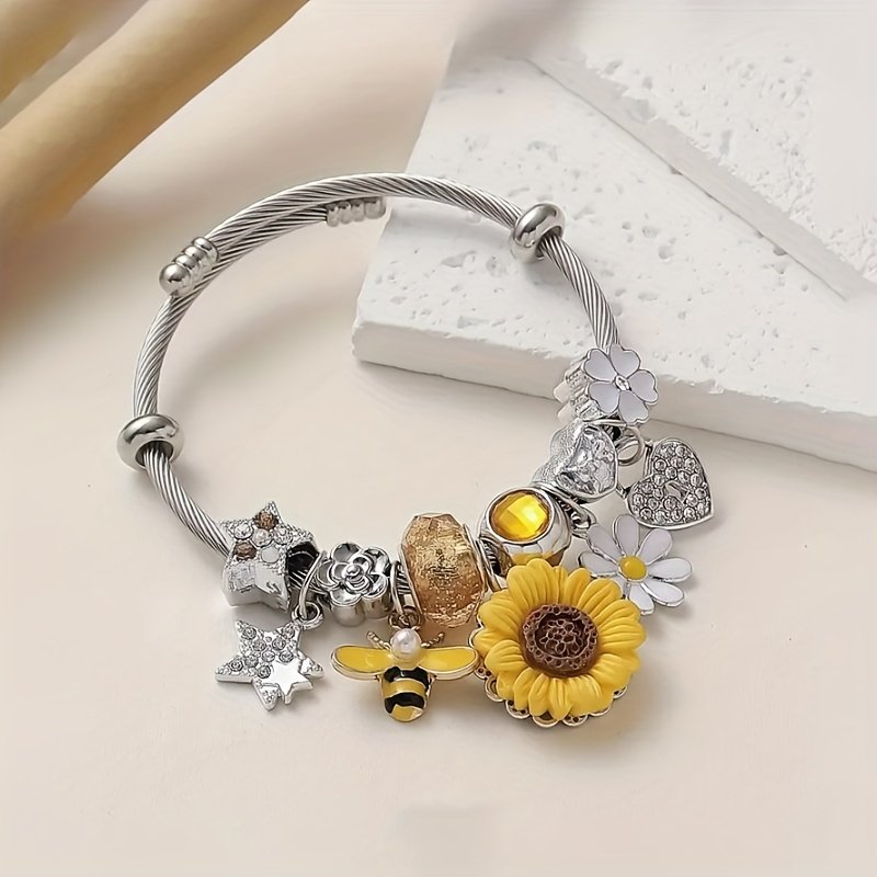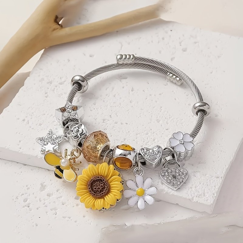 Bracelet ouvert ajustable avec des charmes de tournesol