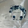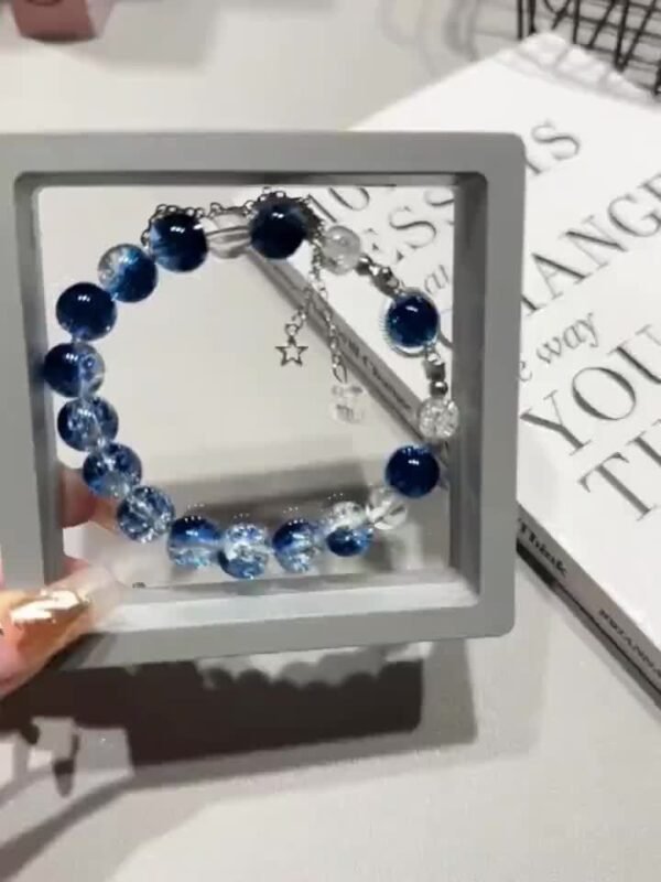 Bracelet de Perles Bleues avec Pendentif Étoile Brillante pour Galaxie