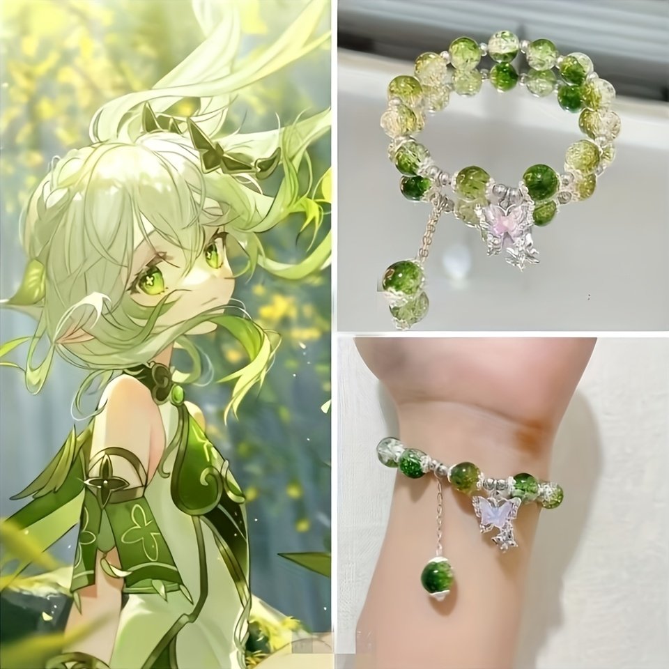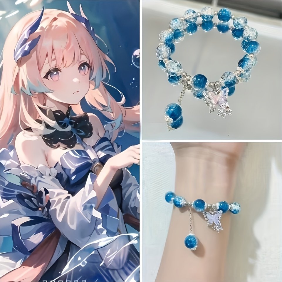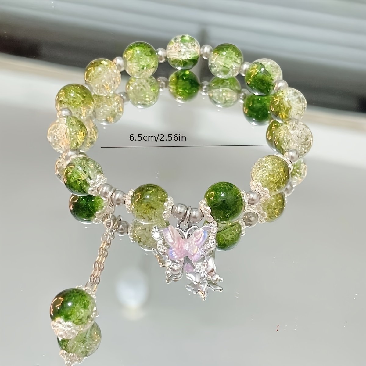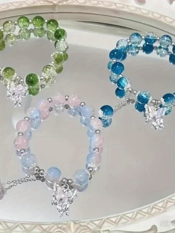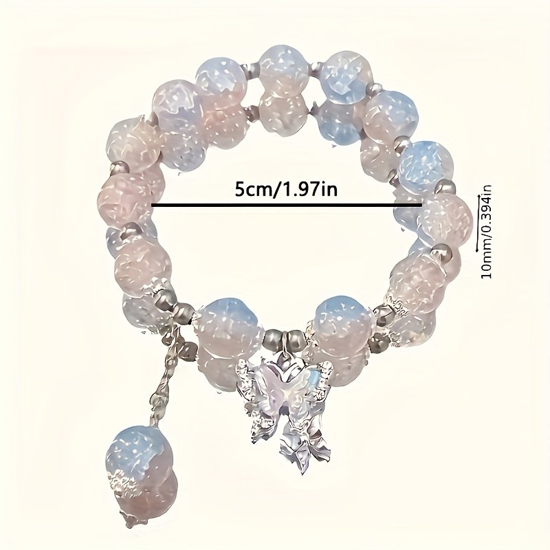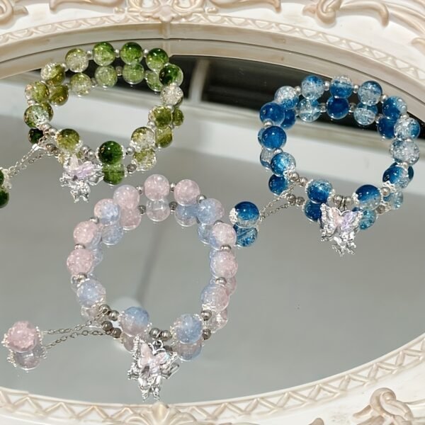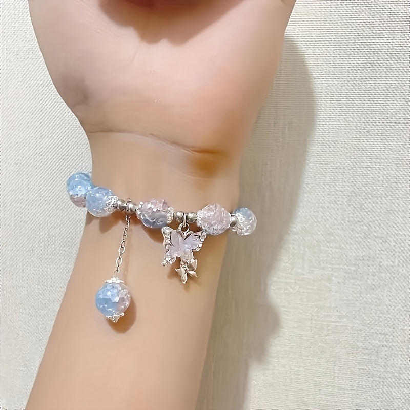 Bracelet en perles de verre élégant de glace et pendentif papillon