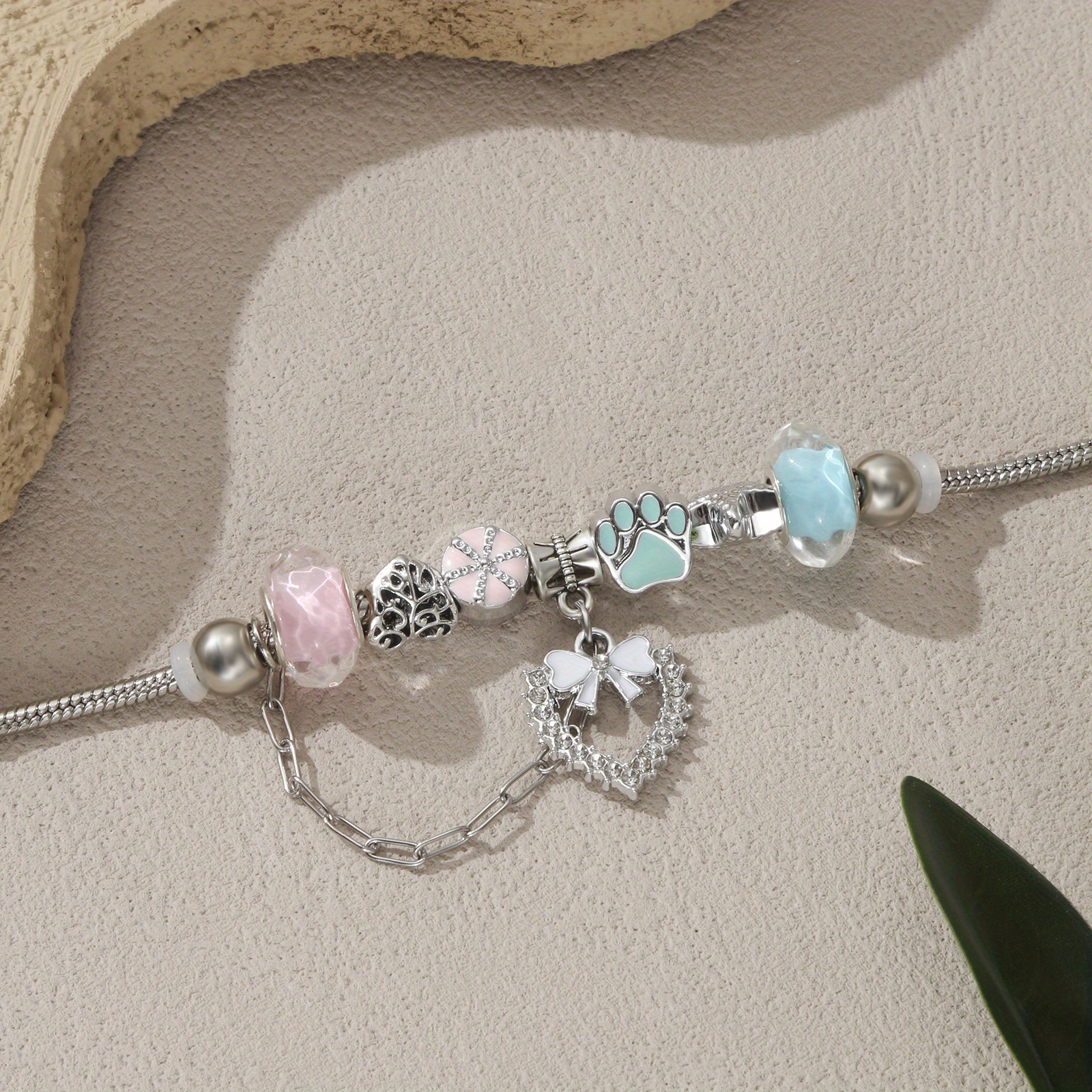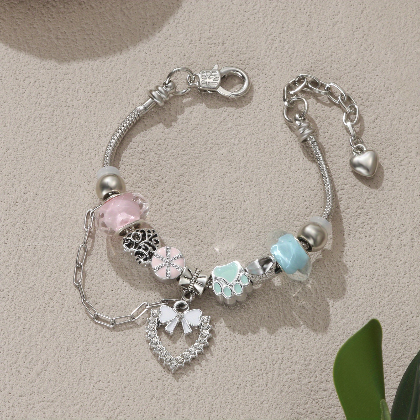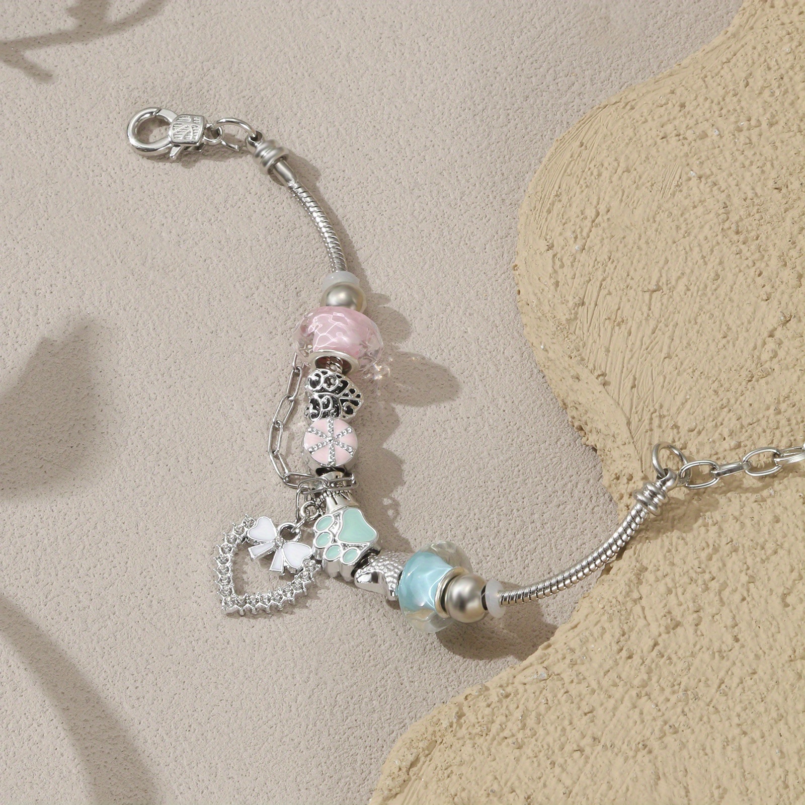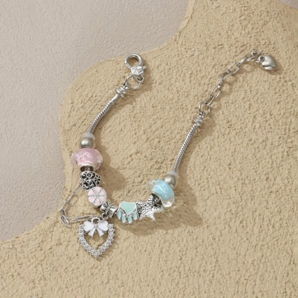 Bracelet Femme Bohème Charm Cœur Rose Turquoise avec Perles Coquillage