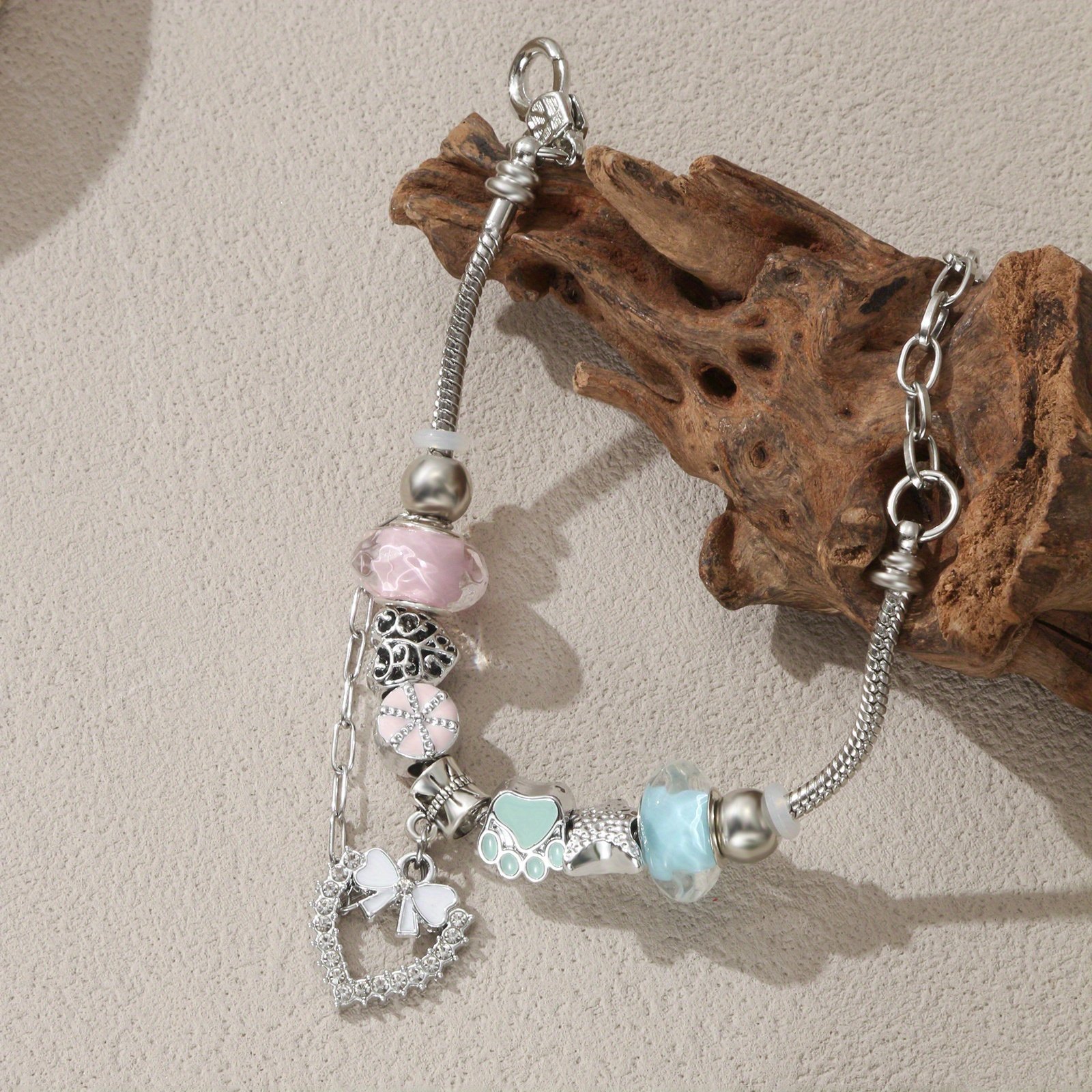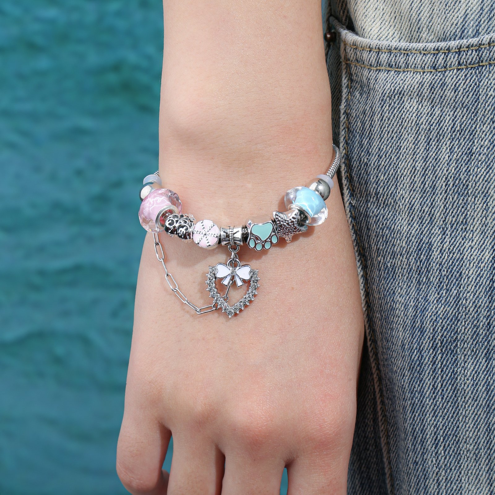 Bracelet Femme Bohème Charm Cœur Rose Turquoise avec Perles Coquillage