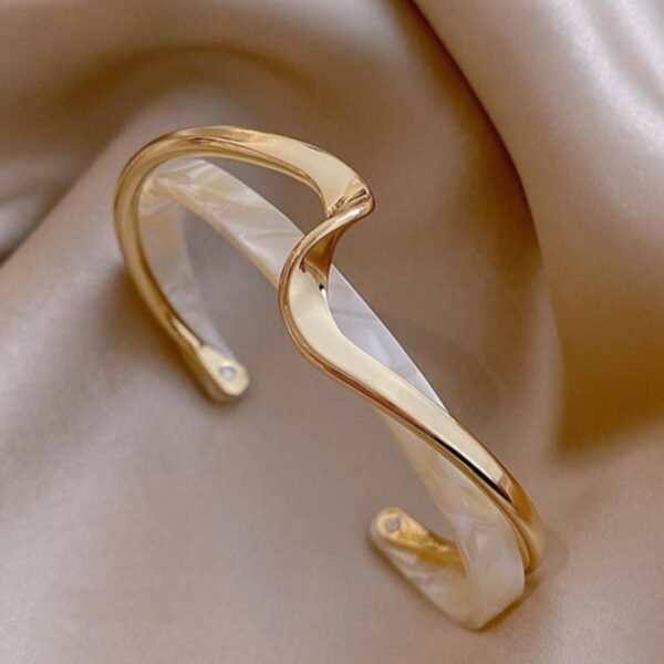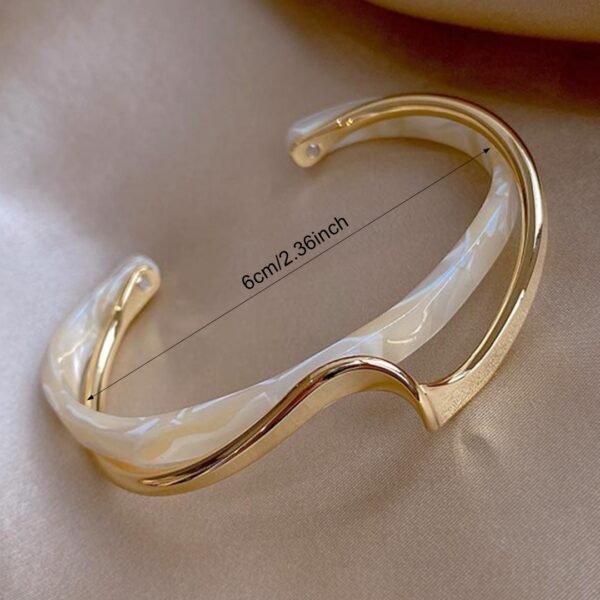 1pc Bracelet Manchette Élégant Style Coréen Géométrique Croisé – Blanc & Doré – Bangle en Acrylique Revêtu, Beige Crème & Tons Dorés, Polyvalent pour Tenue Quotidienne, Fêtes, Mariages, Anniversaires – Cadeau pour Elle, Idée Cadeau d’Anniversaire