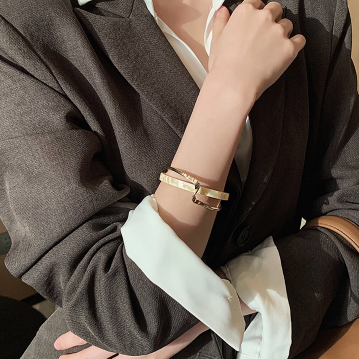 Bracelet Manchette Élégant Style Coréen Géométrique Croisé