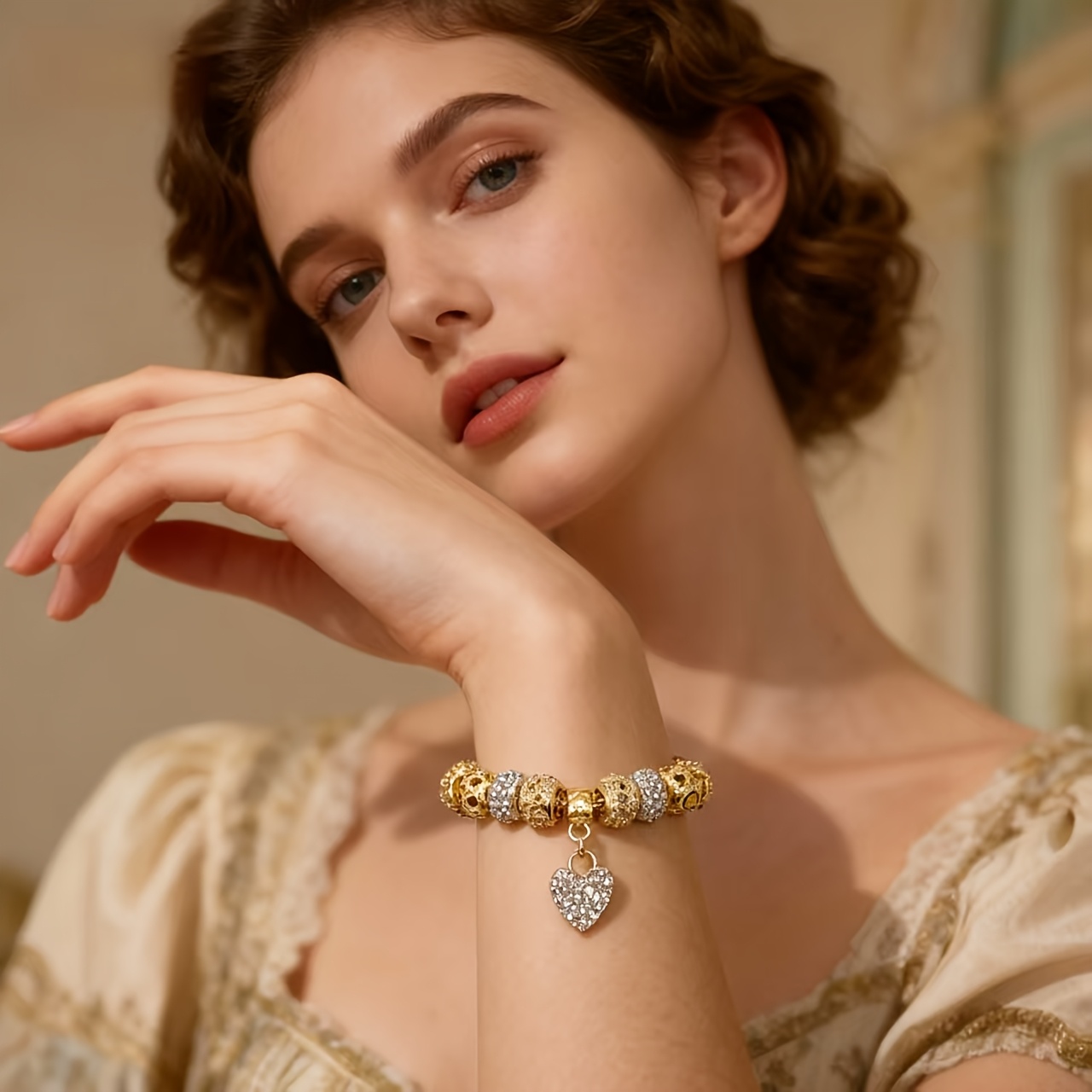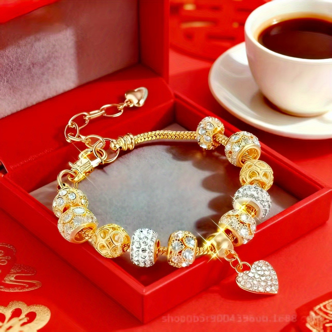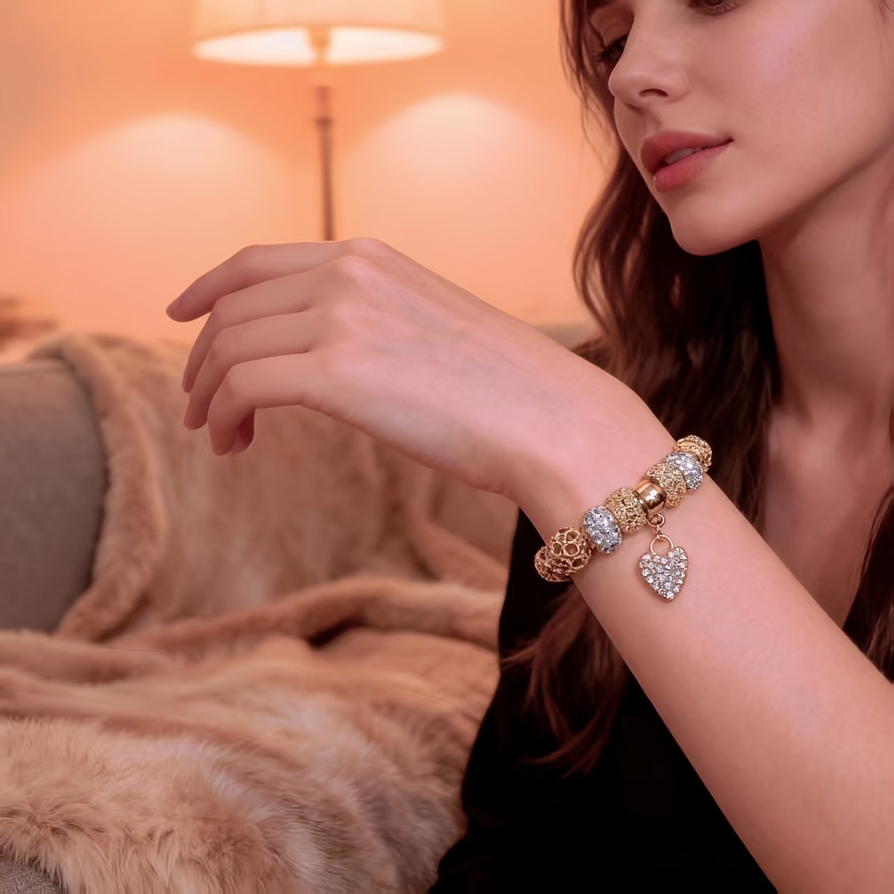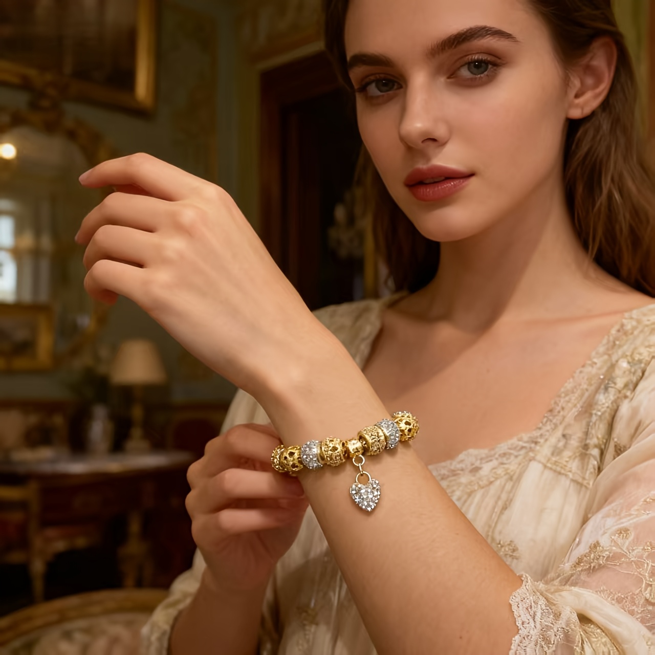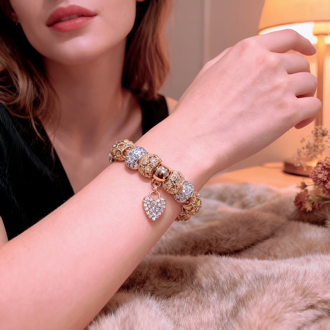 Bracelet Tendance avec Dix Perles Brillantes à Grand Trou