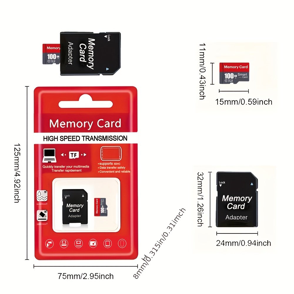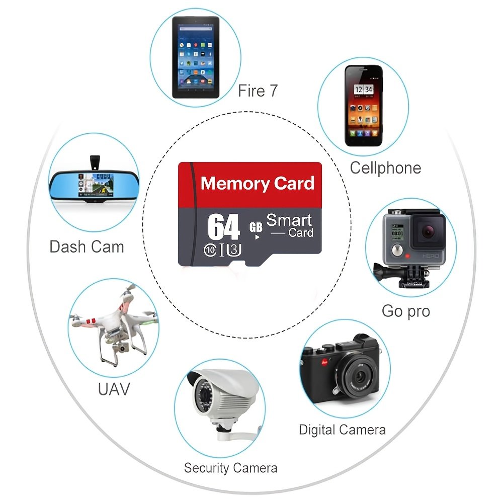 Carte mémoire/Carte TF, Mini carte SD haute vitesse C10 U3, disponible en 8 Go, 16 Go, 32 Go, 64 Go pour des performances fiables et sécurisées pour smartphones, tablettes, appareils photo, caméras de surveillance, consoles de jeux, etc.