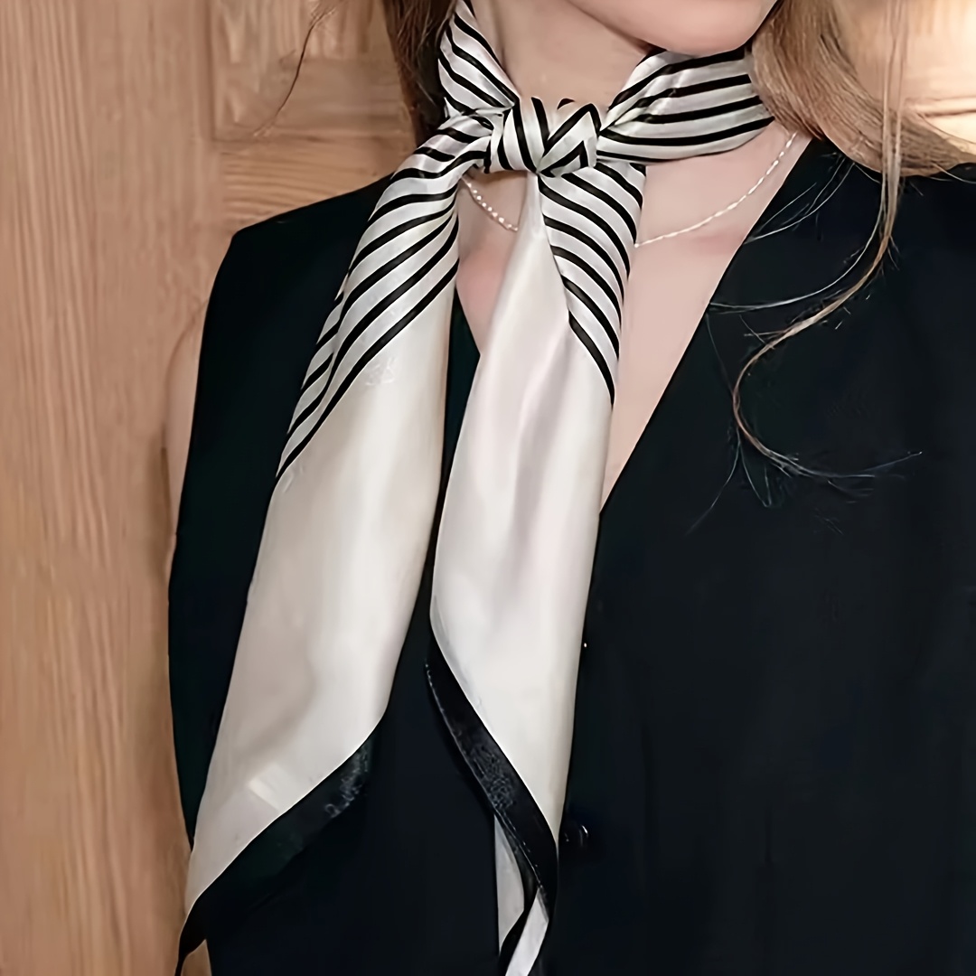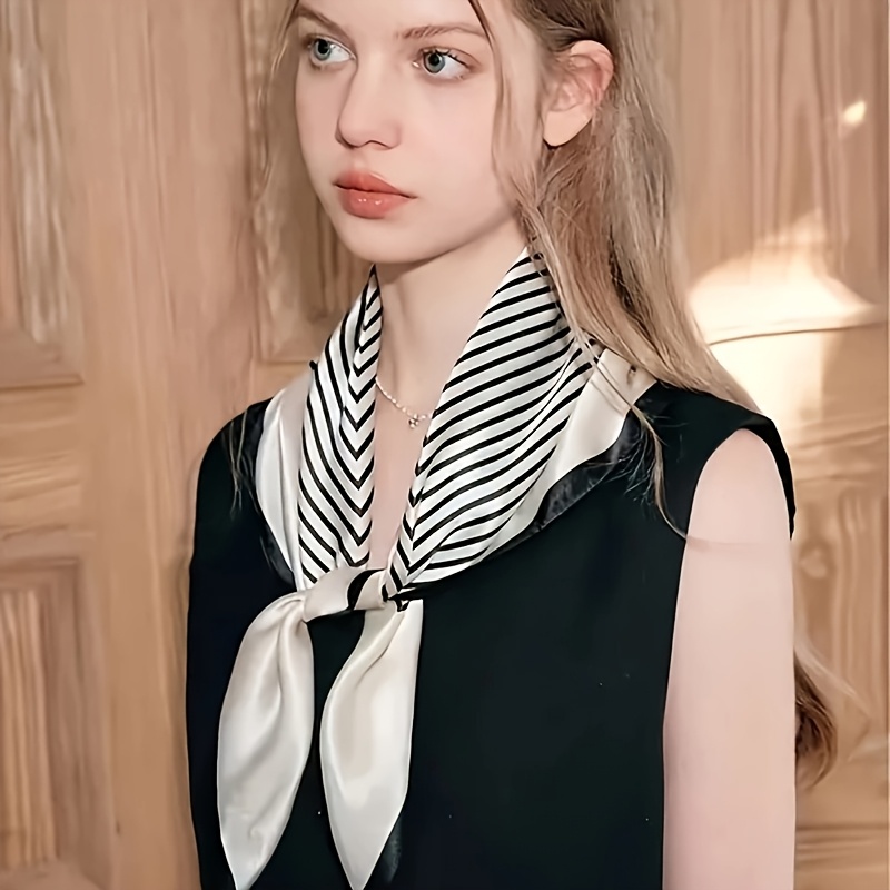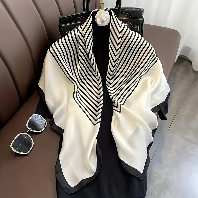 Châle Simple à Rayures en Satin de 35.4 Pouces, Foulard Carré Élégant