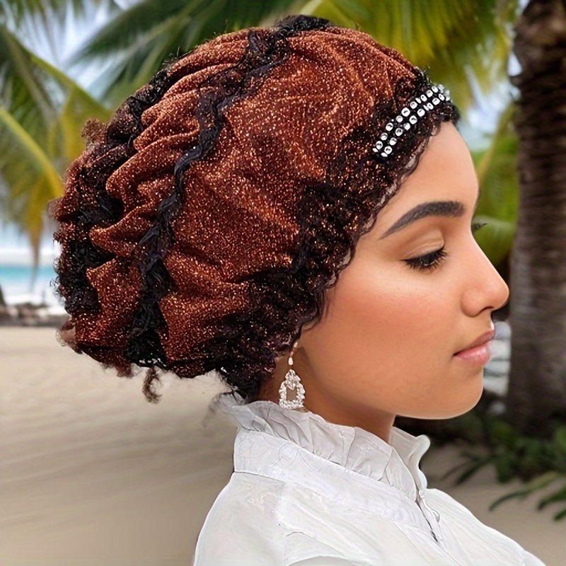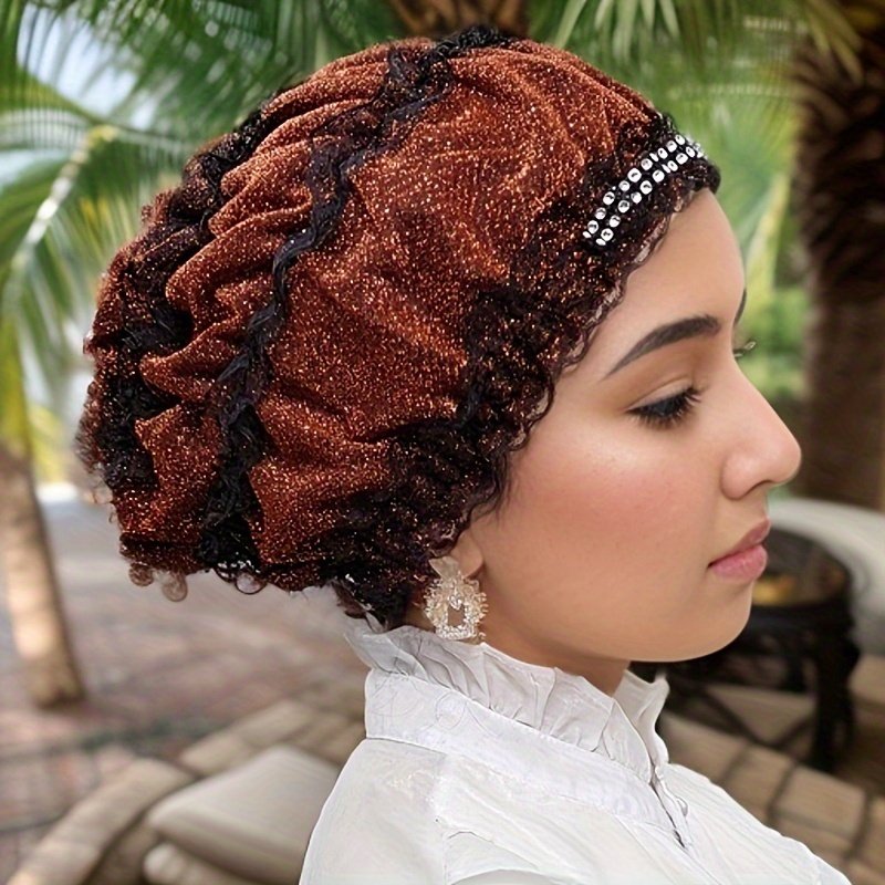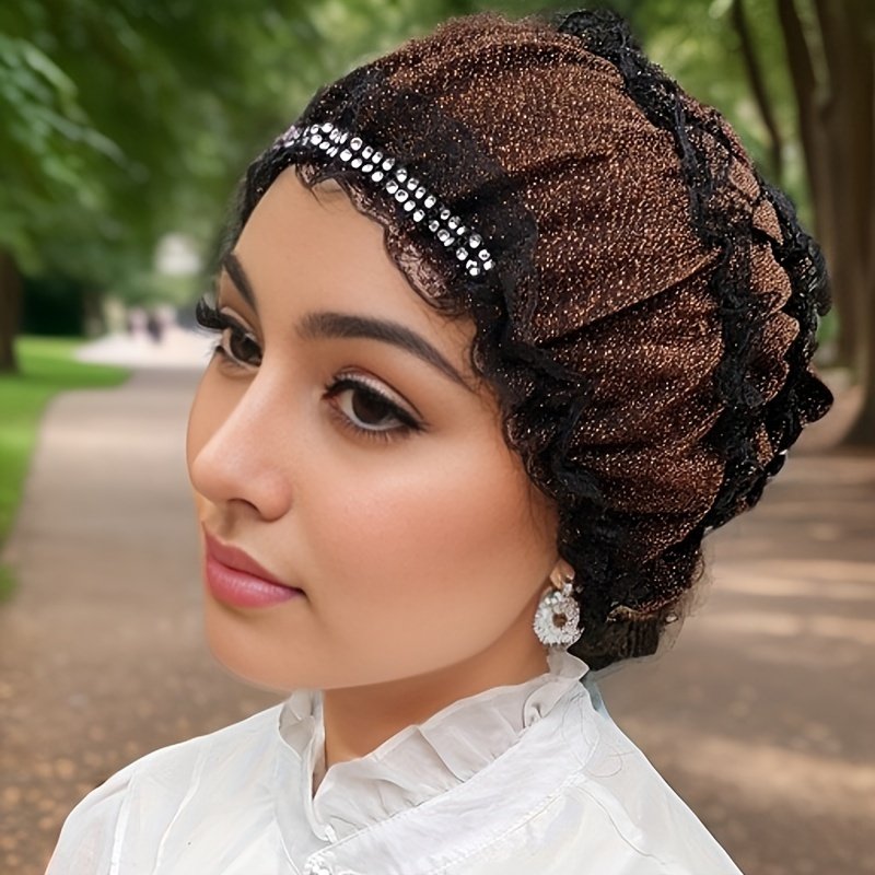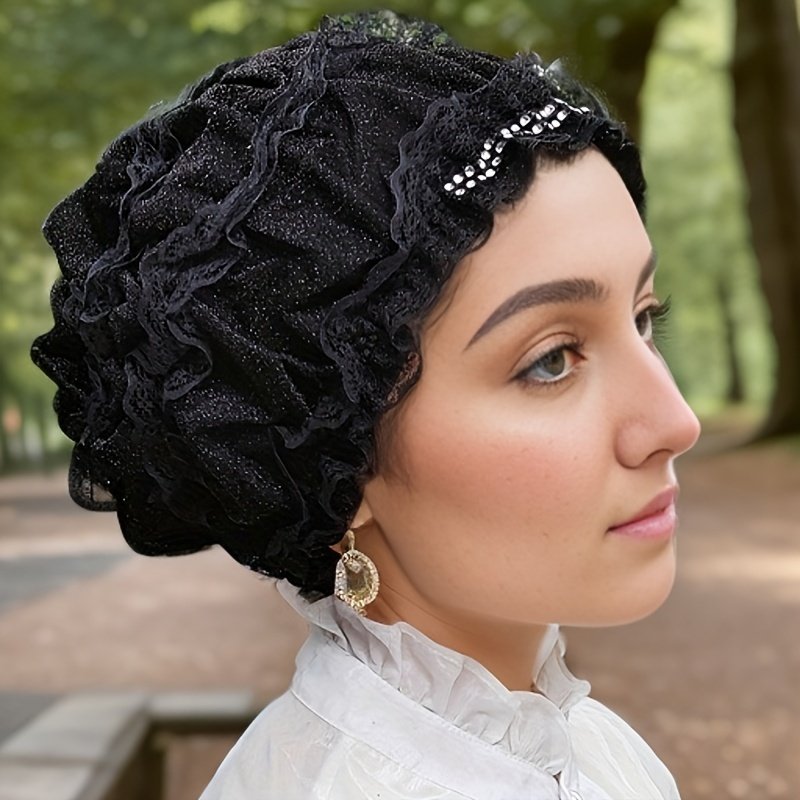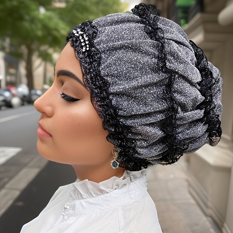 Chapeau Foulard Musulman à Une Couche avec Broderie de Fleurs en Dentelle, Capuche Élastique avec Diamant Décoratif, Chapeau Respirant pour la Maison, Chapeau de Mère, Chapeau de Beauté Superposé, Chapeau Hui