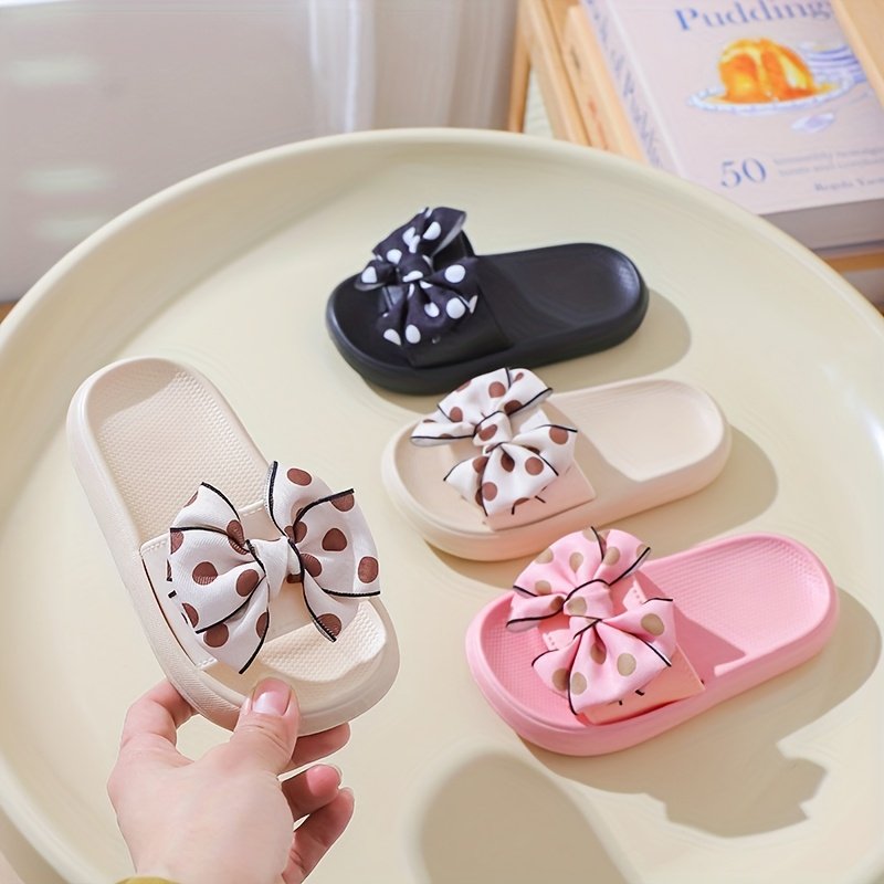 Chaussons pour enfants EVA à pois et nœud papillon – Chaussons d’été pour bébé et fille – Chaussons d’intérieur silencieux, -odeur et antidérapants pour tout-petits et enfants