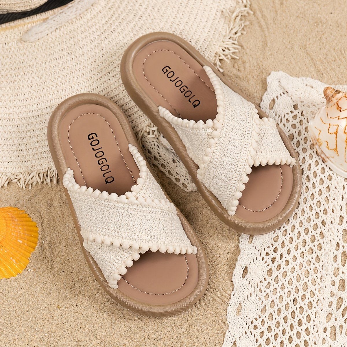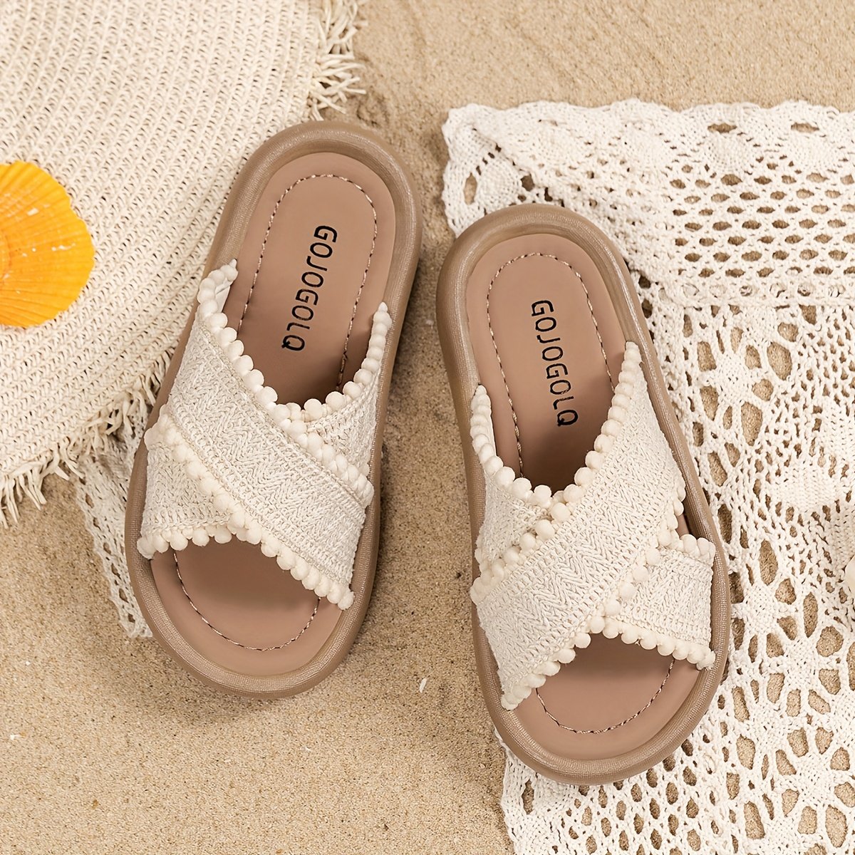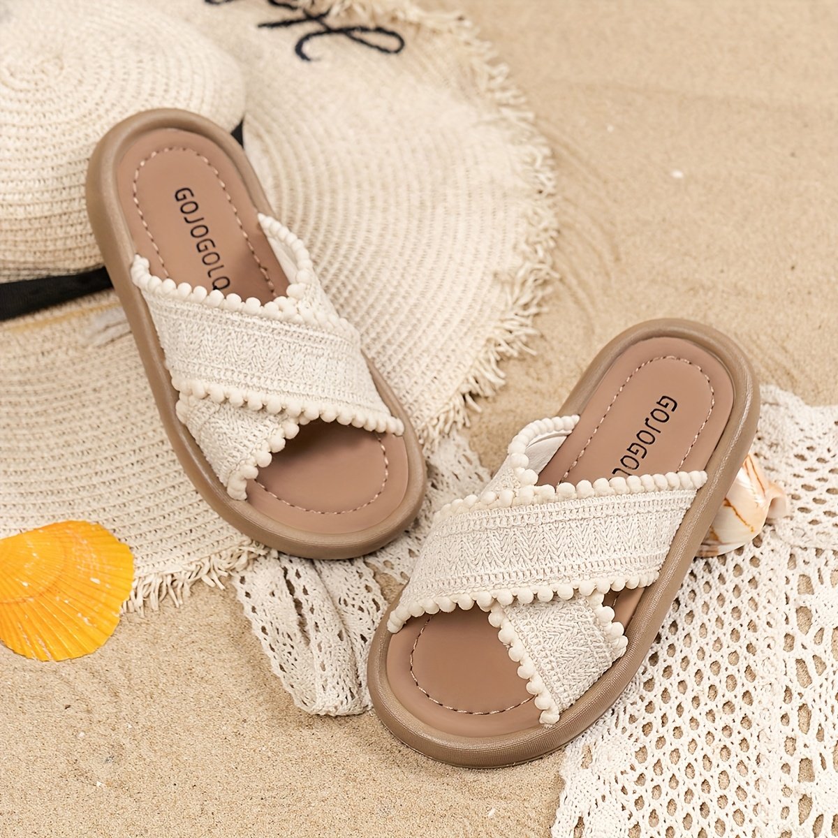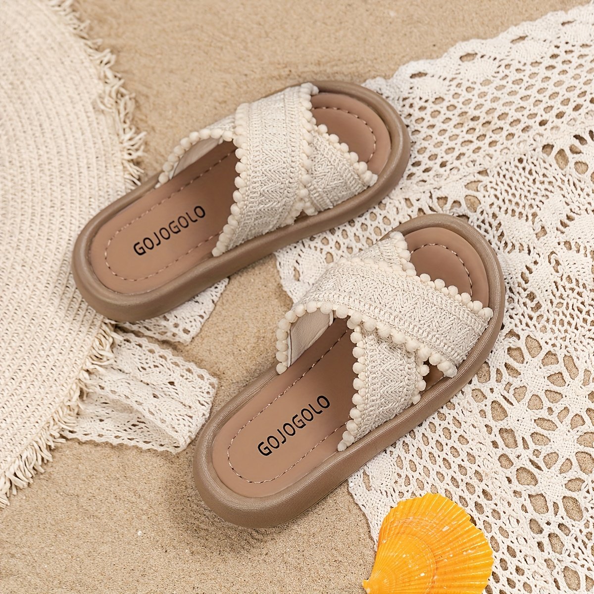 Chaussures de plage d'été en toile pour filles, sandales plates et souples, chaussures à enfiler avec des boutons-oreilles.