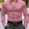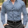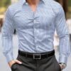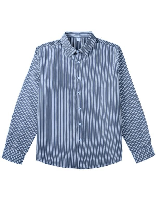 Chemise à Col Rayé pour Affaires – Plaque de Boutons Avant, Manches Longues Non Extensibles