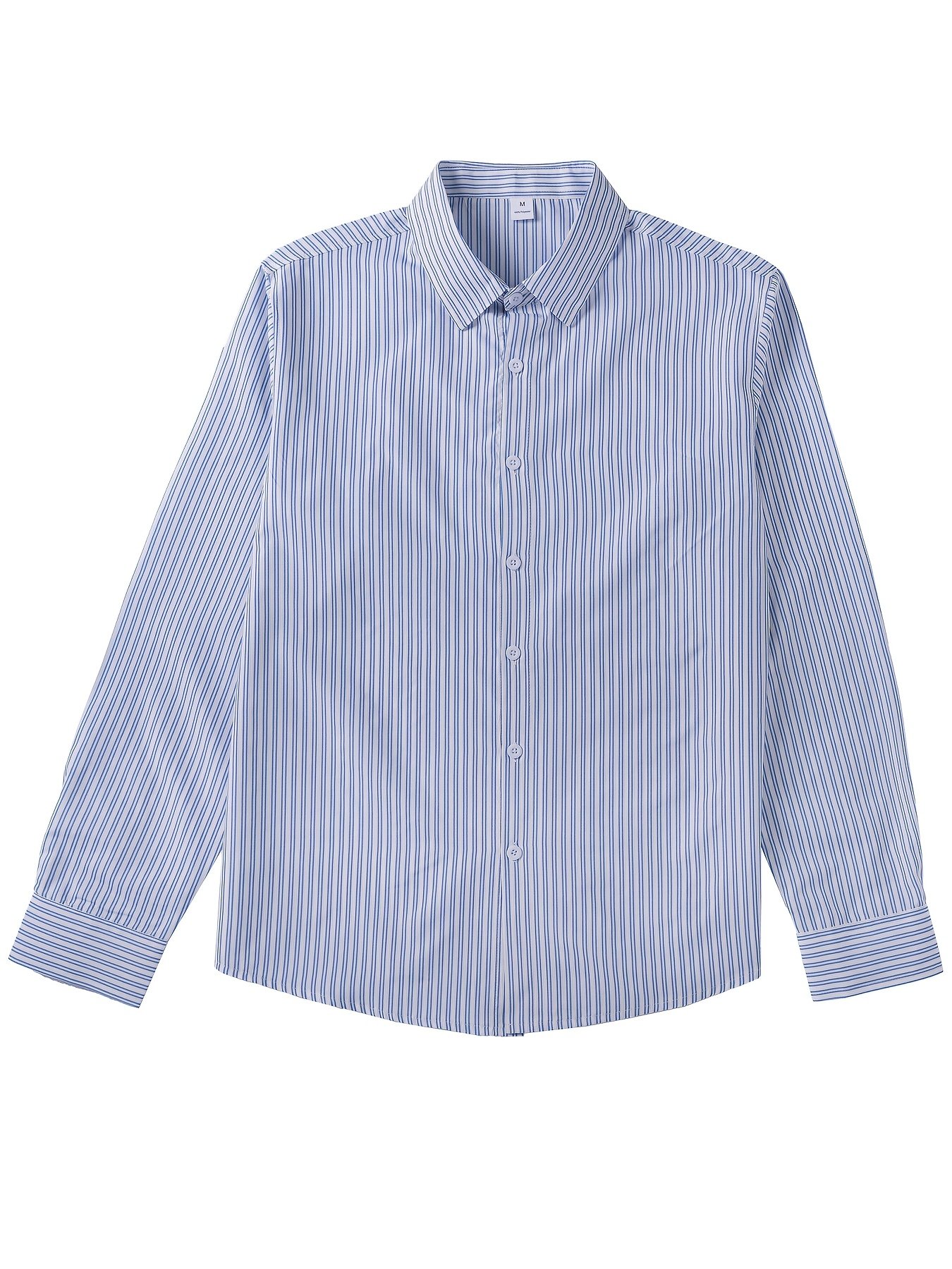 Chemise à Col Rayé pour Affaires – Plaque de Boutons Avant, Manches Longues Non Extensibles