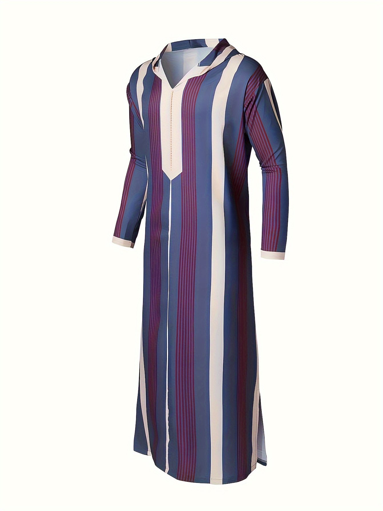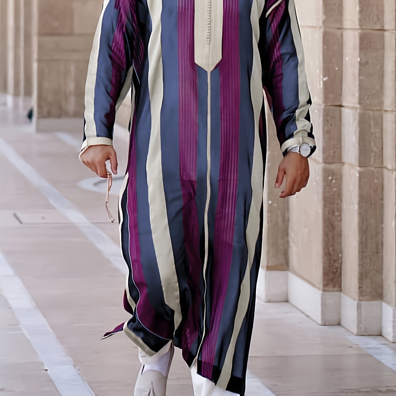 Chemise décontractée à manches longues, style arabe du Moyen-Orient, ample et rayée, avec col musulman, cadeau pour les aînés, cadeau pour